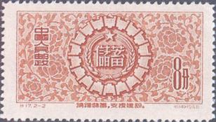 释义 | 储蓄 发行日期:1956年10月1日 齿孔度数:14 印刷版别:雕刻版 图幅:36×19 全张枚数:104(8×13) 设计者:卢天骄 雕刻者:高品璋 印刷:北京人民印刷厂营业分厂 (1)4分 储蓄徽 900万枚 (2)8分 储蓄徽 1400万枚 (1)-(2) 2枚全 |