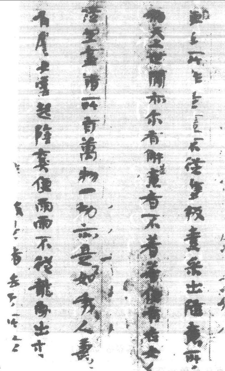 释义 | 老女人經新疆鄯善吐峪溝出土。此乃古寫經斷片,計十余行,各行長二十三公分,行間有蟲蝕形迹。尚存一百五十字,頗顯精彩。書體與木簡文字相通,同呈八分姿態,具漢氏風氣,洵值珍重。今為日本中村氏書道博物館珍藏,并有解說:“書體與陝西、山西等地出土之甕字相通,屬東漢遺物無疑。經紙蓋以簾漉製成,但未存痕迹。實為現存最大之漢代紙墨迹。斯坦因 (1862—1943英國漢學家)。曾三次深入我國西北部,竊走大量古文物。伯希和 (→【伯希和】)等所搜是時手書寫經,不過五、六字,而此經所存字數之多,蓋為世界之冠。” 老女人帖 (局部) |