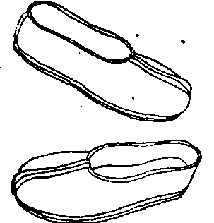 (名)指鞋帮分两部分,接缝在正中,并可把脚背遮住的旧式布鞋。过去主要在农村地区流行。