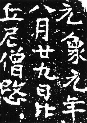 释义 | 僧愍造像记 【简介】: 亦称《比丘尼僧惽爲亡父母造白玉像》。东魏元象元年(538)八月刻。正书。六行,第二行六字,余行四字。曾归端方。《中国书法大辞典》著录。 【赏析】: 这是一件气力之作,每个笔画都尽全身之力而爲之。字数虽不多,却把作者的强健腕力罊露在我们面前。在创作时,作者的情感是充沛的,一笔落纸,地折山摇,力重千钧。没有犹豫和举棋不定,一笔到位,即使不够完整,也不再重笔补上。笔画并不光洁,在笔画两面有一缕缕晕化之迹,抑或是残缺痕,如“千里阵云”的自然,给笔画蒙上了一层朦胧感。作者用笔的果断令人信服,迅疾和凝重令人浮想联翩。唐代草书家张旭的创作姿态本身就是舞蹈艺术,“挥笔大叫,或以头揾墨”。此碑落笔掷地有声,当时的创作形态想必可观,绝非小心翼翼、战战兢兢者笔下所出。此碑有若干写得极有气势者,如“元”、“丘”二字,“元”字转折似怒猊抉石、渴骥奔泉,遒劲居先。而“丘”字稳若泰山,气满神旺,给人留下深刻印象。结体则有很大的不足,“月”之拘谨束缚,“僧”之上下失调,“九”之重心不定,“愍”之松散,都一目可见。北魏书家中有许多缺乏对结构的深研,亦不通晓粗细、大小、远近、高低的辩证关係和透视原理。因此常常出现大小字一样粗细,形成字型大小悬殊,即使在书写一半时出现了弊病,也不思在余下的笔画中进行补救。美中不足,令人遗憾。 |