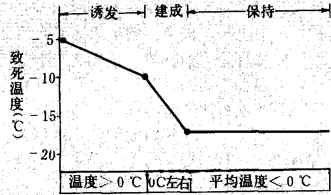 油菜等作物低温锻炼示意图 抗寒锻炼过程中的生理变化主要是: ❶激素平衡改变: 脱落酸含量增加,赤霉素和生长素含量下降;在离体组织和细胞水平上,脱落酸可代替低温,诱导耐冻性增加; 激素平衡改变可能是植物耐冻基因表达的启动因子。 ❷细胞内含物的种类和浓度改变: 可溶性糖和糖醇、可溶性蛋白质、某些氨基酸 (特别是脯氨酸)、脱氧核糖核酸、核糖核酸和抗坏血酸含量增加,含水量下降,细胞汁液浓度升高,这些变化有利于缓解脱水胁迫,改善低温下的生理功能,增加膜的稳定性。 ❸膜成分改变: 磷脂含量增加,促进磷脂转移酶活性提高,磷脂组成改变,磷脂酰乙醇胺(PE)和磷脂酰胆碱(PC)含量增加,脂肪酸不饱和度增加;从桑树皮、黑麦叶片、鸭茅根颈中分离的质膜碎片中磷脂/蛋白质比值明显增加; 固醇含量变化不大,但种类改变;质膜蛋白质,特别是糖肽的种类和数量明显变化。 ❹膜结构功能稳定性增加: 维持偶联因子的结合能力和主动运输功能,相变温度下降,细胞脱水时仍维持双层构型,对机械应力的抗性增加。 植物对结冰温度的适应包括:❶避免结冰温度。如以种子干燥或埋藏于土壤中的延存器官过冬; ❷防御组织结冰。如增加细胞汁液浓度以降低冰点; ❸减少因细胞外结冰而引起的脱水。如细胞内溶质浓度加倍,持水力增加,细胞的脱水量将下降50%; ❹耐受细胞脱水。细胞脱水时,维持膜系统结构功能的稳定性,主要取决于细胞膜的组成、理化特性和结构功能,这与植物的基因型和抗寒锻炼有关。同时也受细胞内微环境的影响,某些可溶性蛋白质和糖、脯氨酸对细胞膜有明显的保护作用。耐寒性❶(low temperature tolerance)植物适应低温的能力。植物在低温下生长、生存和繁殖的能力,以及温度回升后恢复生长、产生经济效益的能力。低温是限制植物自然分布和种植分布的重要因素,寒害是农业生产的一种主要威胁。植物抗寒性是制订农业区划,确定作物适宜播种栽植期的重要依据。植物耐寒力因植物种类、生育期、器官和生理状态不同而有明显的差异,也随降温速率和低温持续期而改变。原产热带和亚热带地区的植物,寒害温度为—1.5~20℃。原产温带地区的植物,寒害一般在组织冰点以下温度发生。故耐寒性又分耐冷性和耐冻性两类。 ❷(cold hardiness)昆虫耐受低温的能力。某种昆虫过冷却点越低,耐寒性越强。昆虫耐寒性强弱常是造成不同地理分布和某种昆虫分布区内越冬死亡率差异的重要原因。耐寒性因虫种、虫态和季节而异。如昆虫越冬时体内含水量少,结合水比例高,脂肪和肝糖含量增加,耐寒性强。其强度与体内糖类、亲水胶体物质、氨基酸及盐类的积累有关。昆虫体液浓度高则耐寒性增强。 耐寒性cold endurance;freeze (/lowtemperature)resistance