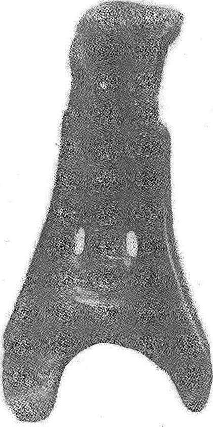 图3 浙江河姆渡出土骨耜 图4 辽宁建平出土石耜 耒耜leisi plough中国原始的翻土农具。起源于新石器时代。《易 ·系辞》:“神农氏作,斫木为耜,揉木为耒”。“耒”为木柄,“耜”为木柄一端的刺土部分,耒和耜构成一件农具。有时也将整件农具称为“耒”或“耜”。中国古代最初是石耜、木耜、骨耜或蚌耜,后来出现铁耜。装耜一端的木柄上缚一小横木,操作时以脚踏,利用足踏的力量,把耜头刺入土中,称为“推”;然后以手板耒上端,利用杠杆作用把土块发掘起来,称为“发”。随着人向后退,连续“推”“发”而不断翻土。现在的铁锹实际上就是耒耜的遗制。中国古代也常以“耒耜”作为农具的总称,或借指耕种。 耒耜 060 耒耜中国在夏商西周时代使用的耕具是耒耜。“耒”是由原始农业时期使用的尖头木棒发展而来的,在甲骨文中作“ ☚ 农业机具 犁 ☛ 耒耜 耒耜古代的耕种工具。来源于原始社会的尖头木棒,后经过改造,耒柄由直变成弯曲,尖头由一个变为二个。汉代武梁祠画像石刻有《神农执耒图》,神农手中所执即为双齿耒。这说明早在原始社会末期, 关中地区就盛行双齿木耒。后来,人们为了提高生产效率,就把叶片状石板或片状兽骨,固定在木棒下端,以代替耒的尖头,被称为石耜或骨耜。古书上说:“斫木为耜,揉木为耒”,就是这个意思。春秋战国以后,由于牛耕兴起,耒耜渐为耕犁所代替。 ☚ 尽地利 耦耕 ☛ 耒耜lěi sì❶指古代一种象犁的农具,也用做农具的统称。《本草纲目·天子藉田三推犁下土》:“《月令》:天子以元曰祈谷于上帝,亲载耒耜,率三公、九卿、诸侯、大夫躬耕。” 耒耜lei siancient plough 耒耜古农具名。耒、耜本各为一物,战国时文献记载中往往连称,汉代学者因此多认为耒、耜为一物。如许慎认为耒为上部,耜为下部,都属于木制;郑玄也认为上为耒,下为耜,但说耜为金属刃口的专称。后世学者对此亦各有不同解释。今人亦有认为耒耜为一物者。然据《管子·海王》所谓“耕者必有一耒一耜一铫”的说法,则耒、耜当各为一物。参见“耒”、“耜”。 |