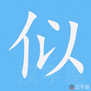 字源解说 以,甲骨文 表示婴孩与父母相像。金文 将“厶” (婴儿)与“人” 分离。有的金文 = (台,即“胎”)+ (人,父母),造字本义:胎儿与父母相像。篆文 基本承续金文 字形。 附 文言版《説文解字》:似,象也。从人, 聲。 附 白话版《说文解字》:似,相像。字形采用“人”作边旁,采用“ ”作声旁。 引申线索