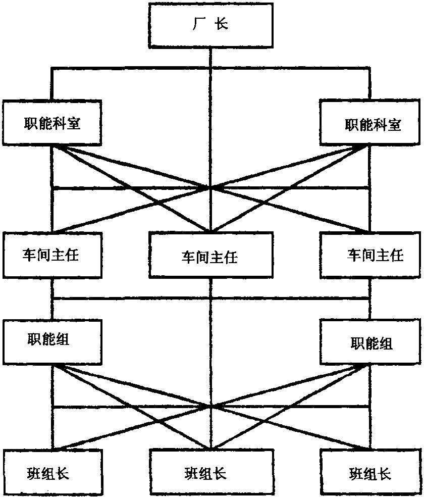图4-2 职能结构 ☚ 直线制 直线参谋制 ☛ 职能制 职能制亦称“多线制”。是企业组织形式之一。它是按职能实行专业分工代替全能管理者的组织形式。如图示: