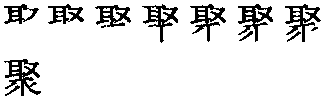 聚Jù现行罕见姓氏。今山西之阳泉有分布。《山西人口姓氏大全》收载; 《新编千家姓》亦收; 《姓氏词典》 引 《姓氏录》 亦载,未详其源。 聚jù會,集合。賈誼《旱雲賦》:“遂積聚而給沓兮,相紛薄而慷慨。” 聚读音j·ü(ˋ),为ü韵目,属u—ü韵部。才句切,去,遇韵。 ❶聚集。 ❷村落;聚落。 上一条: 冣 下一条: 句 聚1. 勒,被绳子等紧紧套住。如:“脖子里绳子聚死了。”2. 四肢或面部觉得血涨而难受。 聚tɕy44❶水流不走: 水~住了。气憋不畅: 气出不来,~得脸红。 ❷村落: 《史记·五帝本纪》: “一年而所居成~。” 《正义》:“~为村落也。” 《说文》: “聚,会也,邑落日象。” 张舜徽曰:“聚之言集也,谓众人所集会也。集会双声。积物为聚,积土为山,木集生为林,草集生为丛,皆声义同源。” 聚〔ju〕 jid wud. 聚餐 〔ju can〕 jid wudted. 聚集 〔ju ji〕 jid wud jidlongs. 聚居 〔ju ju〕 jid wud nib. 聚拢 〔ju long〕 jid wud jidlongs. 聚齐 〔ju qi〕 jid wud zeix. 聚jù <绥德>挡住水流的去路,使它聚集或不能流过: 那条沟里打个坝,把水~起来|你锸(铲)几锨土,把那边~定,叫水从这面流。 聚{}五6777①动会集;聚集;集合。⑴古方言。《方言》第三:「萃、襍,集也。东齐曰~。」清钱绎笺疏:「《广雅》:『萃、襍、集,~也。』皆一声之转也。」⑵吴语。江苏苏州。⑶湘语。湖南长沙〖 〗。~钱。②动整理;使整齐。⑴吴语。江苏苏州。⑵湘语。湖南长沙〖 〗。把韭菜~好再洗。③动(水)停止流动。中原官话。陕西商县张家塬〖 〗。水~住啦,一下下儿致嗒就成了一个潭。④动嫁。粤语。广西。《广西情歌・见妹生得白皎皎》:「巴蕉做扇摺打摺,~个老公同黑铁;人人讲他同煤黑,妹讲他脸白过雪。」   聚〈隐〉清末以来湖北武汉纺织业指数目三。参“明、暗、聚、宽、拐、变、夜、间、梢”。 聚jù会集;集合 △ ~会|~宝盆。 【注意】下边不要写成“豕”。 聚聚集:~合︱ ~会︱~首︱~拢︱~齐︱~餐丨~积︱~敛(lian)︱~讼(song)︱~居︱~落︱~歼︱~集︱会~︱集~︱积~︱攒(cuan)~屯~丨囤~丨欢~丨团~丨完~丨凝~ ︱蚁~︱蜂~︱啸~︱~宝盆︱~沙成塔︱~精会神︱~讼纷纭︱物以类~︱攒(cuan)三~五。 聚jù❶ 聚合,会合:聚沙成塔│聚精会神│找个时间,大家聚一聚。 ❷ 姓。 聚(1次) 聚合。众枉~而矫直《惜》 聚jù聚合;聚集。《惜誓》:“众枉聚而矫直。”朱熹集注:“枉者自以为直,又群众而聚合,则其党盛,而反欲揉直以为枉也。”《七谏·怨思》:“荆棘聚而成林。” 聚ju聚餐 聚合 聚会 聚积 聚集 聚歼 聚焦 聚居 聚敛 聚拢 聚首 聚众 簇聚 攒(cuan)聚 蜂聚 欢聚 汇聚 积聚 凝聚团聚 完聚 围聚 啸聚 聚宝盆 聚光灯 聚光镜 凝聚力 聚精会神 聚沙成塔 攒三聚五 物以类聚,人以群分 聚ju汇集;会合:老同学是该经常~一~|茶馆里~了一群退休的老头儿|我跟他难得~上一回|一家人~的时候也不多。 聚(反)化 散 聚jù❶聚集:人有~就有散,~时欢喜,到散时岂不清冷。(三一·711)其间小枝分歧,或如蟠螭,或如僵蚓,或孤削如笔,或密~如林。(五十·1162) ❷积攒:世人都晓神仙好,只有金银忘不了;终朝只恨~无多,及到多时眼闭了。(一·22)