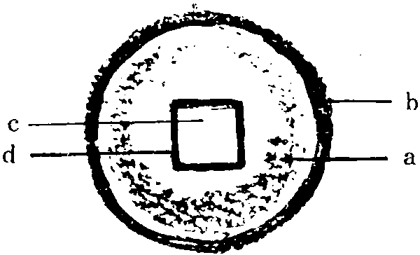 古代名物 > 貨幣類 > 概稱部 > 錢體字圖 > 肉 肉 ròu 亦稱“錢身地張”。指古錢除去内、外郭以外的實體部分。肉體較常制厚重者稱“厚肉”;反之稱“薄肉”。“地張”表面稱“肉上”。《爾雅·釋器》:“肉倍好謂之璧,好倍肉謂之瑗,肉好若一謂之環。”郭璞注:“肉,邊;好,孔。”《漢書·食貨志下》:“卒鑄大錢,文曰‘寳貨’,肉好皆有周郭。”顔師古注引韋昭曰:“肉,錢形也;好,孔也。”《隋書·食貨志》:“乃更鑄新錢,背面肉好皆有周郭。”《金史·食貨志三》:“正隆二年……鑄錢,文曰‘正隆通寳’,輕重如宋小平錢,而肉好字文峻整過之,與舊錢通用。”