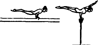 是用力的平衡动作,是以单臂或双臂屈肘使身体保持在水平位置上所做的平衡动作。在1989年版的国际女子评分规则中规定,以双臂肘撑平衡并停止2秒为低难度动作,若以单臂支撑停止2秒则属于中难度动作。练习者两臂屈肘撑木(或以单臂屈肘撑木),身体伸直,肘靠腰前侧,背部肌肉收紧,两腿后举,身体成水平,纵向或横向做均可。动作要求:身体成水平,平衡时两肘支撑身体停止2秒。