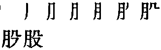 【提示】月,中间两横宋体与两边相接,楷体与左边相接,与右边相离。右上是 , 末笔不带钩, 不要写成几。 *股gǔ8画 月部 (1) 大腿,从胯到膝盖的部分: ~肱|头悬梁,锥刺~。 (2) 绳、线等的组成部分: 合~线|三~儿绳。 (3) 组织机构中小于科的单位: 总务~|文书~。 (4) 集合资金中的一份或一笔财物平均分配的一份: ~份|入~|~金。 (5) 指股票: ~民|~市|炒~|~权|~息。 (6) 数学上称不等腰直角三角形较长的直角边: 勾~定理。 (7) 量词。 1. 用于成条的事物: 两~毛线|一~泉水|这~道好走。 2. 用于气体、气味、力气: 一~热浪|一~淡淡的清香|有~子劲头。 3. 用于成批的人(含贬义): 一~敌人|小~匪徒。 4. 用于股票份额: 买进1万~|每~15元。 股 ☚ 腴 脛 ☛ 股gǔ古代形声字。从月(肉),殳(shū)声。声母个别转音。指大腿,自胯至膝盖的部分。引申指事物的一部分。如:股票|总务股|三股绳。组词如:股份。再引申为量词。如:一股道(路)|一股线|一股劲|一股香味|一股土匪。 股★常◎常