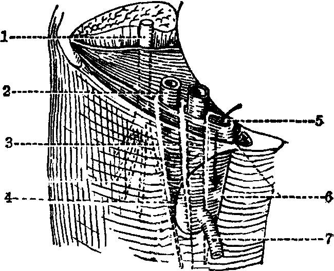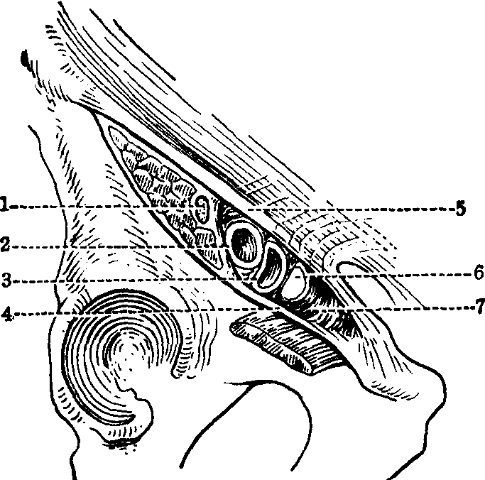 释义 | 股三角femoral triangle系大腿局部解剖标志区之一。在大腿前面的上部:上界为腹股沟韧带;内侧界为长收肌;外侧界为缝匠肌。内容股神经和血管。该区结构较复杂,发生炎症或手术均需特别注意。 股三角femoral triangle亦称斯卡巴三角。位于股前内侧的上份。上界腹股沟韧带,外界为缝匠肌内侧缘,内界为长收肌外侧缘。其顶为阔筋膜,底由髂腰肌、耻骨肌及其筋膜围成。上方借血管腔隙与腹部相通,向下经收肌管通腘窝。其内容从外向内依次有股神经、股动脉、股静脉及腹股沟深淋巴结和淋巴管等。股深血管及其分支位于股血管的后方。 股三角 股三角股三角是位于大腿前面上1/3,底边朝上、尖朝下的三角区。其上界为腹股沟韧带;外侧界为缝匠肌内侧缘;内侧界为长收肌的内侧缘;前壁为阔筋膜;后壁是髂腰肌、耻骨肌和长收肌所形成的凹槽(图1)。 图1 股三角 股三角区浅筋膜较厚,内有腹股沟浅淋巴结呈“T”形排列于腹股沟韧带下方及大隐静脉末端周围,它收纳会阴、腹壁、臀部及下肢的淋巴。大隐静脉末端的属支和股动脉发出的皮支,以及股神经的皮支都分布于此区。大隐静脉末端的属支有阴部外静脉、腹壁浅静脉和股内、外侧静脉。大隐静脉曲张进行高位结扎时,需将这些属支一一切断结扎,否则造成静脉血逆流,导致手术失败。在取腹股沟皮瓣时,常保留股动脉的腹壁浅动脉和旋髂浅动脉以及伴行的同名静脉,以备血管吻合。此外,生殖股神经和股外侧皮神经也出现于此区; 前者经腹股沟韧带中点下方布于股前上分皮肤与阴囊; 后者在髂前上棘以下约5cm处,穿大腿深筋膜至浅筋膜,布于股外侧面皮肤。 图2 股鞘示意图 股三角前壁的阔筋膜,在距耻骨结节下外方约4cm处有一缺口,称为隐静脉裂孔。它被筛筋膜封闭。筛筋膜被股部的浅血管,大隐静脉及淋巴管穿过。在股三角底,由外侧向内侧排列的重要内容是:股神经、股动脉、股静脉和淋巴结以及股管等,但在股三角尖处,股动脉位于股静脉前方。股动脉主要分支为股深动脉。股深动脉发有旋股内,外侧动脉等。旋股内、外侧动脉与股深动脉第1穿支和臀下动脉在股后部形成十字吻合。股鞘位于股三角上分,由腹横筋膜及髂腰筋膜伸延形成。其中包含股动脉、股静脉及股管。股鞘上宽下窄,呈漏斗形,长约3~4cm。借两个纵隔将鞘腔分为外、中、内三格: 外侧格容纳股动脉,中间格容纳股静脉,内侧格为股管。股管内有1~2个淋巴结,称为腹股沟深淋巴结(Cloquet结)。鞘的下端与血管外膜融合。 股三角向上经腹股沟韧带深面的血管腔隙和肌腔隙与腹膜外组织相通。股管长约为1.5cm,上端是股管入口,称为股环,内侧壁向下外倾斜,与股静脉外膜融合,所以管的下端是封闭的。股环的前界为腹股沟韧带,后界为耻骨梳韧带,内侧界为腔隙韧带游离缘,外侧为股静脉。股环直径为 0.8~1cm(图3),仅能容纳小指尖。股环由腹膜外脂肪填塞,遮蔽股环的腹膜呈一小窝,称为股小凹。倘腹腔内容经股管突出,称为股疝,在女性较男性 图3 股 环 图4 异常闭孔动脉 ☚ 收肌管 腹股沟区 ☛ 股三角 股三角femoral triangle又称“斯卡三角”。位于股前内侧的上方。上界腹股沟韧带,外界为缝匠肌内侧缘,内界为长收肌外缘。其顶为阔筋膜,底由髂腰肌、耻骨肌及筋膜围成。上方借血管腔隙与腹部相通,下经收肌管通腘窝。其内容从外向内依次股神经、股动脉、股静脉及腹股沟深淋巴结和淋巴管等。股深血管及其分支位于股血管的后方。 ☚ 腹股沟斜疝评分法 脐膨出 ☛ |