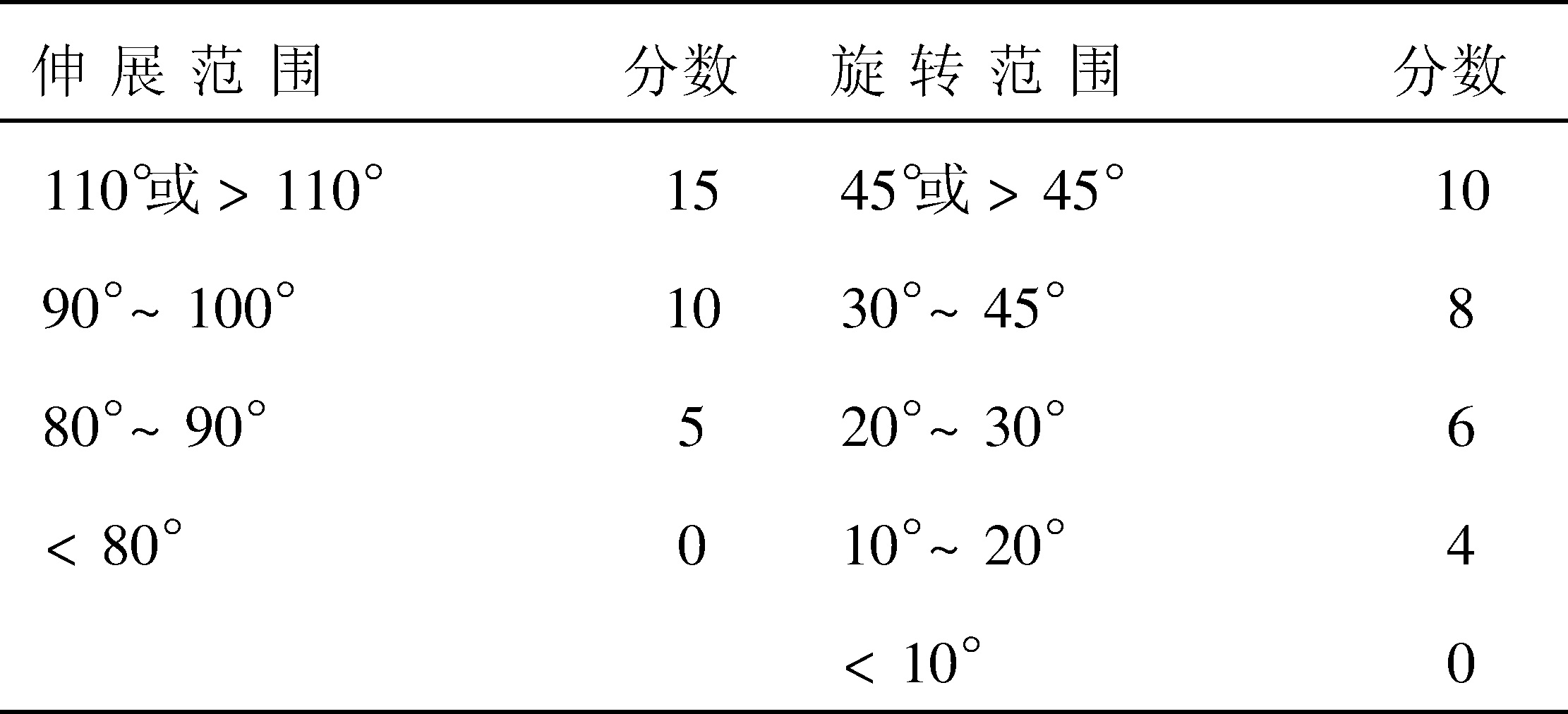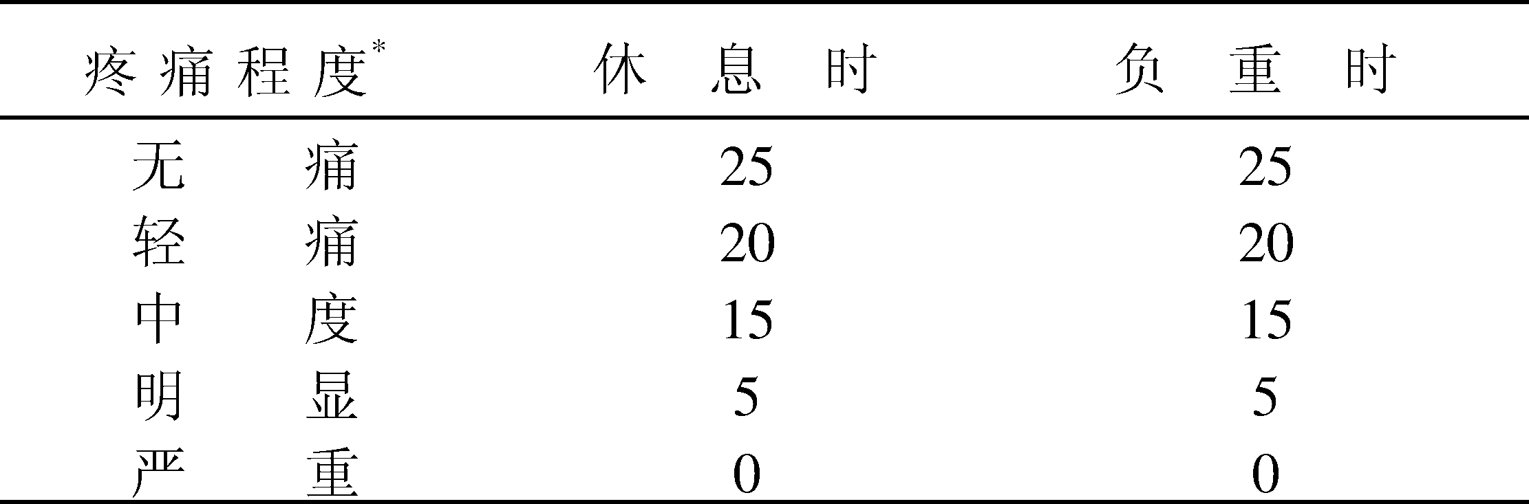 释义 | 股骨头无菌性坏死临床评分 股骨头无菌性坏死临床评分clinical score of aseptic necrosis of head of femur临床采用改良的Jacobs等的方法,疼痛50分,活动能力25分;髋关节功能25分,总计85~100分为优;75~84分为良;65~74分为可;65分以下为差。其方法见表1~3。 表1 临床疼痛评分(50分) 表2 活动能力评分(25分) 表3 功能评分(25分) ☚ 股骨头无菌性坏死的分期 儿童股骨头无菌坏死 ☛ |