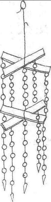 黄色交叉的木片下,串挂数十个小黄球。示意铺内出售肥皂。