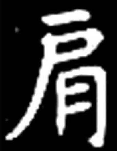 ❹ 击毂摩肩 肩jiān户、月(肉)会意,意为人的双肩像门户一样可以转动。作声符生成的字有: qián 掮(掮客) 肩 jiān(8画)