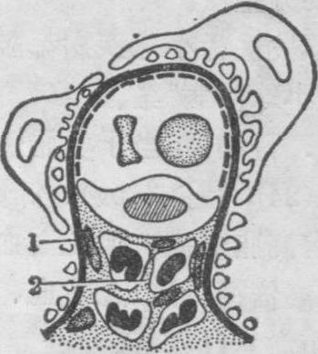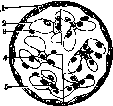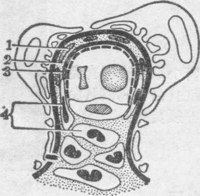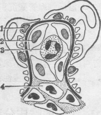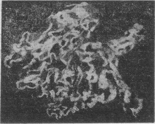 3.4膜-增殖性肾小球肾炎或系膜、毛细血管性肾小球肾炎 病变肾小球的系膜细胞增殖,系膜基质增多,毛细血管壁增厚,多数病例用特殊染色 (PAS及PASM等) 高倍光镜下观察可见毛细血管基膜呈现双层轮廓。电镜观察可分为三型: ❶ Ⅰ型。毛细血管基膜内皮侧有电子致密物,系膜细胞和系膜基质增多,并沿内皮细胞与基膜之间长入毛细血管壁。这样,原来的基膜内侧又有一层新的系膜基质形成 (基膜样物质),从而解释了光镜下基膜双层轮廓的形成机理。此外,系膜区也可见电子致密物 (图9)。 ❷Ⅱ型。毛细血管基膜内 (致密层) 可见密集的电子致密物,系膜细胞和系膜基质轻度增生(或不增生),因而也缺乏系膜组织长入毛细血管壁的特点。 ❸Ⅲ型。毛细血管基膜内皮侧和上皮侧均有电子致密物沉积,有时两者尚可联结一体将基膜浸没。上述三型中,以Ⅰ型最多见。荧光检查可见IgG、IgA、IgM及大量C3沿毛细血管壁和系膜区沉积,Ⅰ型呈粗颗粒状,Ⅱ型呈细颗粒或近似线状。分叶状肾小球肾炎是由于系膜基质高度增生,压迫了毛细血管,使毛细血管襻呈结节状而形成的,有人认为这是Ⅰ型膜-增殖性肾小球肾炎的一个发展阶段。膜-增殖性肾小球肾炎在临床化验中常有持续性补体过低,故又称低补体血症性肾小球肾炎。临床表现为持续性蛋白尿、血尿甚至肾病综合征,有的则呈急性肾炎的临床表现。