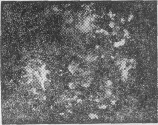 3.5 新月体性肾小球肾炎或毛细血管外性肾小球肾炎 病变肾小球毛细血管壁严重变性坏死,血细胞及大分子纤维蛋白大量漏出,刺激肾小囊壁层上皮细胞明显增生,因而形成上皮性新月体,进而纤维化形成纤维性新月体,新月体体积增大,将肾小囊腔填塞,变性坏死的毛细血管襻被挤压于血管极的一侧(图10)。上述病变的肾小球必须占全部肾小球的50%以上,才称为新月体肾炎,这是与其它类型肾小球疾病伴有少数新月体形成相区别之处。电镜下可见肾小球基膜严重变性或断裂,并可在基膜不同部位发现电子致密物。荧光检查可见IgG和C3沿毛细血管壁沉积,部分呈线状排列(图11),部分呈颗粒状排列。临床表现呈急进性肾炎。