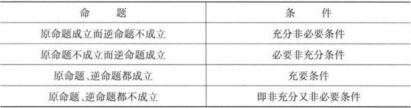1.定义法——即运用充要条件的意义判断. 判断的关键是:正确运用定义(见表一). 表一  2.命题法——运用数学命题的条件与四种命题的内在联系进行分析判断判断的关键是:掌握四种命题的关系及表二. 表二  (3)集合法——运用集合的包含关系进行判断(见表三). 表三  例1 集合A={x|x+1>0},B={x|x—2<0}则“x∈A∩B”是“x∈A或x∈B”的___条件. 解 充分不必要. 例2 已知关于x的实系数二次方程x2+ax+b=0有两个实数根α、β.证明:|α|<2且|β|<2是2|a|<4+b且|b|<4的充要条件,要求先证充分性. 证明 (1)充分性:由韦达定理,得 |b|=|α·β|=|α|·|β|<2×2=4. 设f(x)=x2+ax+b,则f(x)的图象是开口向上的抛物线.  (2)必要性: 由 即 即f(±2)>0,|b|< ,又f(x)的图象是开口向上的抛物线. ∴方程f(x)=0的两根α、β同在(—2,2)内或无实根. ∵α、β是方程f(x)=0的实根, ∴α、β同在(—2,2)内, 即|α|<2且|β|<2是2|a|<4+b且|b|<4的充要条件. |