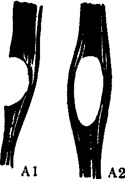A1: 食管平滑肌瘤切线位观察。注意充盈缺损与食管相交处呈锐角