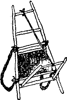 (名)山里人用来背东西的一种工具:山楞子用~背着旅行包,拄着打杵,随在这对男女游客身后爬。(川文83.3.48)