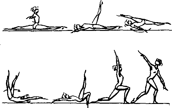 释义 | 背转 背转通常由前后劈腿或仰卧开始,以腿的交叉绕动带动背部的转动。例如:右腿前、左腿在后劈腿,左腿沿地面滑动绕向前,并继续向右摆动,同时上体后倒经仰卧背转(以肩背部为轴),两腿左右分开成横叉姿势,继续转动至360°时,右腿绕至前举,上体经仰卧,左腿向外,沿地面绕直,屈膝成跪立,右腿屈膝脚尖前点地,或随之起立。以上动作的开始姿势可以变化,各种姿势的坐、跪均可经仰卧做背转,转动的幅度和转动时两腿的姿势都可变换,连接动作也可更换。 ☚ 臀转 单腿站立平衡 ☛ |