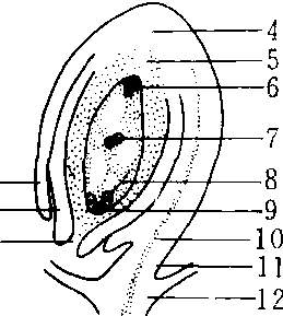 ☚ 胎座 珠被 ☛ 胚珠种子植物特化的大孢子囊,受精后发育成种子。按其是否被大孢子叶所包埋分被子植物和裸子植物。包括珠柄、珠被和珠心。珠被一二层,包于珠心外,顶部未完全闭合,留一小孔(珠孔)。珠心为二层薄壁细胞,其内为胚囊。珠心基部与珠被连接部称合点。 胚珠ovule |