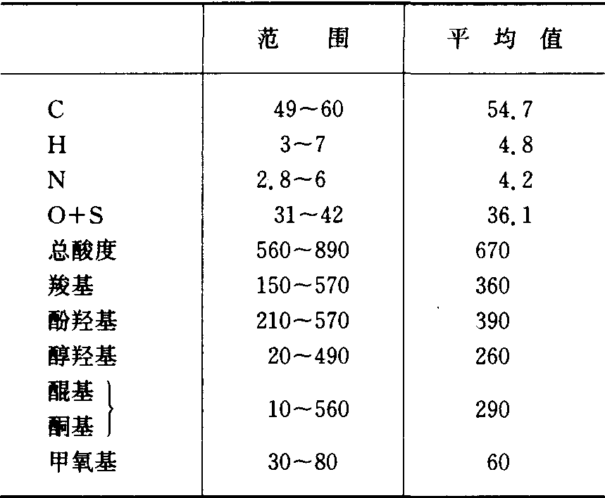 分子量和形状 胡敏酸为一个高度分散的体系。卡梅伦(R.S.Cameron)等利用凝胶过滤法曾将一个胡敏酸分成了11个级份,各级份的重均分子量最低的仅为2600,最高的达1 360 000,数量较多的级份的重均分子量在100 000左右。各未分级的胡敏酸的重均分子量多在50 000~100 000间。胡敏酸为挠性线型分子。分子大小和形状随其浓度、介质的pH值和电解质浓度等而异。在中性和微碱性介质中,当其本身浓度较低且电解质浓度也较低(0.01mol/L及以下)时,由于分子中带阴电荷的酸性基团的相互排斥,分子充分伸展呈线状。本身浓度较高,无论介质的pH值和电解质的浓度如何,分子均卷曲呈球形。本身浓度虽低,介质pH值虽为中性或微碱性,但由于电解质浓度较高(0.50mol/L),分子亦将卷曲呈球形。 作用 由于具有较强的络合能力,胡敏酸破坏硅酸盐矿物等能力与水杨酸、草酸等相近。此外,它还具有将Fe3+、Mo6+、V5+等还原成较低价的能力,这在一定程度上增强了它在岩石风化中所起的作用。但是,重金属一胡敏酸络合物在较低电解质浓度下却易絮凝析出,因而,和重金属—富啡酸络合物不同,重金属—胡敏酸络合物不是植物有效性微量养分元素的“源”,而是它的“汇”; 同样,胡敏酸在重金属元素从土壤到水体的运移中并不起促进作用,而是相反。在提高土壤的阳离子交换和缓冲性能方面,胡敏酸起着积极的作用。它对三氮杂苯类等农药有较强的吸附能力,并能促进某些农药,如杀草强的分解。在土壤团聚体的形成方面,它的作用虽很小,但能显著提高多糖所胶结的团聚体的稳定性。在水培条件下,胡敏酸还能促进植物根和地上部分的生长,增加根细胞膜的透性。 表5 胡敏酸中各类碳的含量(占0~200mg/kg总面积的%)
