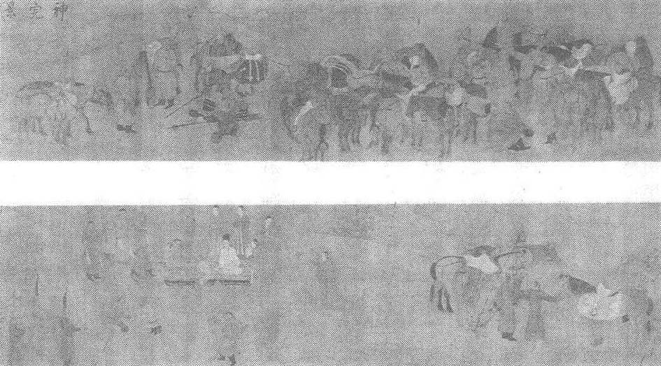释义 | 胡瑰卓歇图卷 胡瑰卓歇图卷五代。胡瑰绘。绢本设色,纵33厘米,横256厘米。北京故宫博物院藏。胡瑰,契丹人,或云为慎州乌索固部落人。生卒年代不详,约生活于唐末及五代初年,定居范阳(今河北涿县)。善画鞍马、人物,尤长于表现本部落的游牧生活。画技工巧细密,《五代名画补遗》中称,“其于穹庐部族,帐幕旗饰,弧矢鞍鞯,或随水草放牧,或在驰逐弋猎,而又胡天惨冽,沙碛平远,能曲尽塞外不毛之景趣。”可见,胡瑰是一位以表现番骑题材而著名的少数民族画家。此图描绘契丹可汗与王公贵族出猎之后在坡岗间歇息、饮宴的情景。所谓“卓歇”,系指立帐歇息或立而暂息的意思。图中,契丹可汗与其阏氏(可汗的妻子)盘坐于毡毯之上,正在饮宴。可汗身穿契丹服,年轻潇洒;阏氏身著汉装,风度俨然,他们身后,男女侍从分列左右。筵前还有奉酒的,献花的,舞蹈的,奏乐的,情绪热烈而又秩序井然。随同可汗一齐狩猎的王公大臣聚在坡岗一侧,或席地而坐,或倚马而立,有人牵着马匹,有人卸下杂物,准备支架帐篷。马鞍上驮着鹅雁等猎物。猎手们一个个显示出疲惫倦怠的神色。人群背后是渺漠荒寂的土岗沙丘,见不到一株绿树,表现出北方荒原间的自然风貌。此图笔法严谨,线条细密,墨色匀和,画风质朴,有突出的民族特色。幅中无作者款印,引首有清人张照书题“番部卓歇图”及清高宗弘历手书的“卓歇歌”,幅中有“神完景足”四字赞语,后纸有王时、高士奇、张照题记。全卷共钤鉴藏印章30方,《江村书画目》、《石渠随笔》、《石渠宝笈续编》著录。 ☚ 卫贤高士图轴 五代人番骑图卷 ☛ |