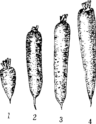 生长发育和产品形成 胡萝卜的生长周期从播种到种子成熟须经过2年,第1年为营养生长期,长成肉质直根。在南方可露地越冬,北方则进行贮藏越冬;在冬季低温下通过春化阶段。第2年春季定植,抽薹、开花、结子,完成生殖生长期。胡萝卜的阶段发育属绿体春化型,幼苗达一定大小之后才接受低温对发育的质变影响。故夏、秋和晚春均可栽培,春季播种过早,苗龄达到一定大小后,会因接受较长的低温而先期抽薹。 营养生长时期90~140天,发芽期约10~15天,幼苗期约25天,叶生长盛期(也叫莲座期)约30天,其后是肉质根生长期,30~70天。种子在4~6℃能萌发,最适发芽温度为20~25℃,叶部生长有较强的适应性,直根膨大期要求13~23℃,夜温为13~18℃。苗期可安排在温度较高或较低的月份,使产品生长期处于最佳温度的月份。胡萝卜要求土层深厚的砂质土壤,pH5~8最宜,要求土壤湿度为土壤田间持水量的60~80%。前期水分过多影响直根膨大生长,后期水分不足,直根亦不能充分膨大。粘重的土壤,未充分腐熟的基肥以及耕翻不深不细,都会妨碍直根生长,产生叉根。 栽培技术 胡萝卜一般夏、秋播种,秋冬采收。根据苗期需要高温,根部肥大期要求凉爽的特点,以及不同地区的气候和不同品种来安排播种期,使苗期处于较高温季节,根部肥大期处在凉爽季节。为了夏季供应新鲜胡萝卜,可采用早熟品种春播,须使苗期避开过长的低温时期,防止幼苗通过春化阶段而造成先期抽薹。 胡萝卜的施肥以基肥为主,追肥为辅。肥料须充分腐熟。每生产1 000克产品约吸收氮3.2克、磷1.3克、钾5克,氮、磷、钾吸收量的比率大致为2.5:1:4。追肥主要在生长前期施用。氮肥不宜过多,以防徒长。选用发芽率高的种子,搓去刺毛,浸种。在雨后或灌水后条播或撒播。条播行距20~30厘米,沟深2~3厘米。撒播后覆土0.6~1厘米,播后镇压。经7~10天出土。可混播出苗快的白菜、小圆红萝卜或菠菜等,防止土壤板结,也可为胡萝卜幼苗遮荫。及时间苗,4~5叶时定苗。条播者保留株距5~10厘米,撒播者株距8~12厘米。每亩留苗数: 大型种3万棵左右,中、小型种为4~6万棵。苗期要求经常保持土壤田间持水量的65~80%的湿润状况。结合间苗进行中耕除草,或采用化学除草。 幼苗7~8叶时,趁土壤湿润深锄蹲苗,促进主根下伸和须根发展,并抑制叶部徒长。经10~20天肉质根明显膨大时,开始充分浇水,经常保持土壤湿润。3~4片真叶时每亩施硫铵2~3公斤,过磷酸钙3~4公斤,钾肥2~3公斤。定苗时结合浇水每亩追磷酸二铵10公斤,氯化钾3~4公斤,催苗茁壮而快速生长。在肉质根开始生长时,追施速效有机液肥或磷酸二铵、氯化钾等。春胡萝卜在播种后90~100天采收;秋胡萝卜则在严冬来临前采收贮藏。 胡萝卜收获后,进行田间株选。选择叶色正、叶数少、直根整齐、颜色鲜美、表皮光滑、无分叉和裂口、无病虫害的植株,切去尾部6厘米左右,选择韧皮部厚、中柱较小的肉质根,切去叶片,保留8~10厘米叶柄。北方地区入窖贮藏,翌春解冻后定植。胡萝卜为异花授粉作物,不同品种的采种田,应隔离2000米以上。定植的株行距30~50厘米。定植前和开花前施肥。种株抽薹后,侧枝相继生长。花茎较高,须设支柱并及时培土,防倒伏。开花参差不齐,种子成熟度不一致,并易产生无胚或胚发育不良的种子,须进行整枝。留主茎和4~5个健壮侧枝,各留一个花序。一般从定植到种子成熟约经过120~140天,可分期采收。 贮藏加工 胡萝卜耐贮藏,可在窖内堆藏,或沟内埋藏,保持±0.5℃的低温和90~95%的空气相对湿度,可贮藏5~6个月。用气调贮藏法质量更好,贮藏期可达200天以上。可腌渍、制罐,还可用为宴席装饰菜。近年来已研制成功优质胡萝卜脯和胡萝卜酱。 病虫害防治 病害主要有黑腐病、菌核病、软腐病。黑腐病(Alternarid radicina): 为真菌病。主要为害肉质根,形成不规则形或圆形、稍凹陷的病斑,其上生黑色霉状物。后期肉质根变黑腐烂。宜在贮前剔除病伤的肉质根,并在阳光下晒后贮藏。采收和装运过程中避免破损。菌核病主要为害肉质根,被害部分软化腐烂,表面生白色棉絮状菌丝体和黑色鼠粪状菌核。软腐病为害肉质根,被害部分软化腐烂,汁液外溢,有恶臭(见大白菜)。虫害主要有胡萝卜微管蚜和茴香凤蝶(Papilio machaon)等。 胡萝卜药名。出《日用本草》。又名黄萝卜、胡芦菔。为伞形科植物胡萝卜Daucus carota L.var. sativa DC.的根。全国各地均有栽培。甘、辛,平。入脾、肝、肺经。健脾和中,滋阴明目,化痰止咳,清热解毒。 胡萝卜carrotDaucus carot L. var. sativa DC.,又称黄萝卜、丁香萝卜、赤珊瑚、黄根。伞形科,胡萝卜属。野胡萝卜种的胡萝卜变种。一二年生草本。2n=2x=18。原产亚洲西部阿富汗等地区,栽培历史悠久。直根系,直根上部形成肉质根,有圆、扁圆、圆锥、圆筒等形状,根色有紫红、橘红、粉红、黄、白、青绿等颜色。肉质根上有四列侧根。食用部分主要由次生韧皮部构成,木质部细。秋、冬抽薹前叶丛生于短缩茎上,三回羽状复叶,叶柄细长,叶色浓绿,叶面积小,叶面密生茸毛。春季抽薹。伞形花序,花白色或黄色,虫媒。双悬果,种皮革质,种胚小,常发育不良,一般发芽率仅70%左右。喜冷凉,较耐旱,宜疏松排水良好的土壤栽培。一般夏秋播种,秋冬采收,也可春播夏收,但应选早熟品种,防止先期抽薹。肉质根富含蔗糖、葡萄糖、淀粉、胡萝卜素及钾、钙、磷等。每100 g鲜重含胡萝