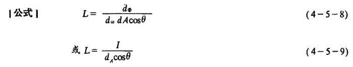 [说明]从发光表面的面元dA发出,并在包含给定方向的锥元内传播的光通量dΦ与光源立体角dω同面元在给定方向上的投影面积的乘积之比,称为发光表面在给定方向上的光亮度。
