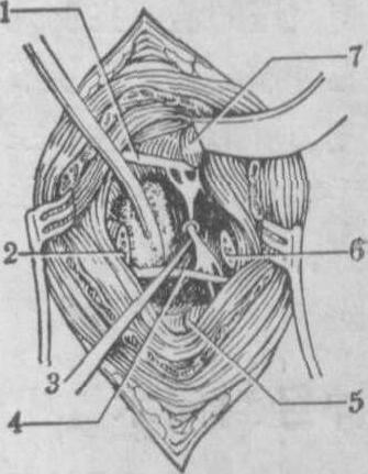 释义 | 胸交感神经切除术 胸交感神经切除术上肢的节前纤维来自胸2~7白交通支,激动神经元位于颈中、下和胸1~3交感神经节;心脏的痛觉也经两侧颈中、下和胸1~3交感神经传入。胸交感神经切除术的常用方法是结合节前和节后纤维切除,以切除胸2~3交感神经节及其交通支,来去除上肢和心脏的交感神经供应。此手术适用于上肢血液循环不足(如雷诺病等)、伴有交感神经功能紊乱的上肢疼痛、上肢和腋部多汗症和心绞痛等。为使胸膜不慎穿破时能施行辅助呼吸,手术多在气管插管全身麻醉下进行。病人侧卧位或俯卧位均可。以第3肋为中心,在背部中线旁3cm处,作长约8~12cm的纵切口。切开深筋膜和脊柱旁肌肉,用固定牵引器将肌肉向两侧牵开,显露胸椎横突。在靠近第3胸椎横突处切开第2肋骨骨膜,剥离骨膜时注意勿损伤胸膜。在骨膜下切除第2肋骨内侧段4~5cm,第2胸椎横突也予切除,如感手术显露不足,可将第3肋骨和横突也切除。用手指将壁层胸膜自第1~4肋骨内面和椎体侧面剥离。如不慎将胸膜撕破,可进行缝合或用湿盐水纱布暂时复盖,防止血液流入胸腔内。在靠近椎体外侧缘的胸膜表面,可看到或扪及纵行的具有结节样膨大的索状结构——交感神经干,在它和第2、3肋间神经相交处,可找到第2 、3胸交感神经节及其交通支。剪断交通支,然后将第2、3交感神经节切除。切口按肌肉、筋膜和皮肤分层缝合。如术中撕破胸膜,大量气体进入胸腔内,为减少术后气胸,在缝合切口前,麻醉师应将呼吸囊加压,使肺膨胀起来,排出胸腔内气体,或在术后立即作胸腔穿刺抽气。需两侧手术的患者,如一般情况许可,且在一侧手术中未曾损伤胸膜,则可一次完成双侧手术。否则可在二星期后再施行另一侧手术。不论一期或分期手术,都应避免在两侧切除相同的肋骨,以免影响脊柱的稳定性。 第2、3肋骨切除后暴露第2、3胸交感神经节和肋间神经 ☚ 星状神经节切除术 腰交感神经切除术 ☛ |