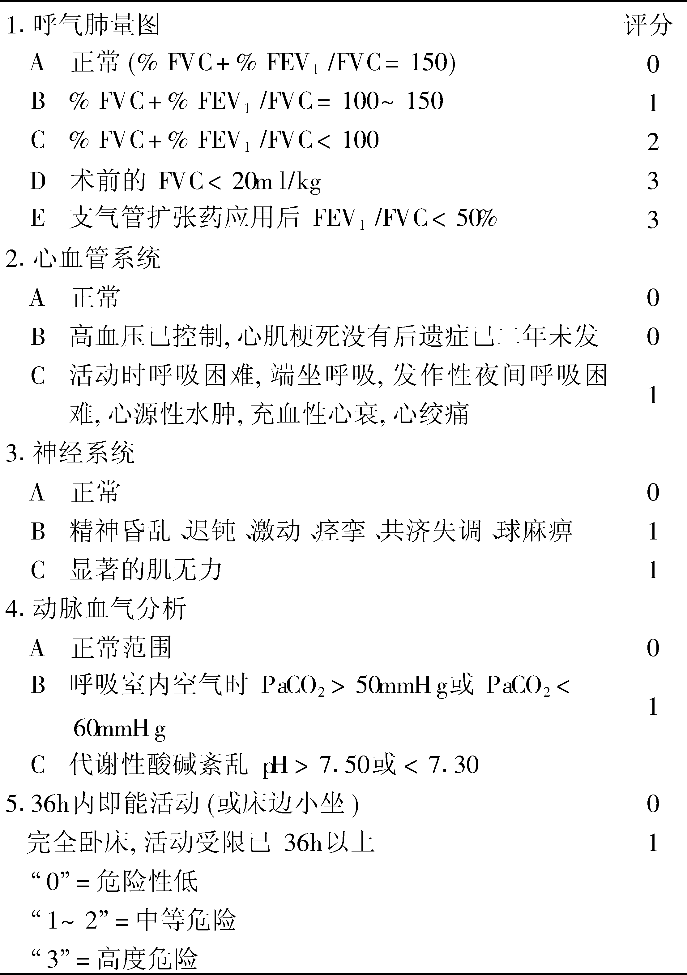 字词 | 胸部或腹部手术后发生肺部并发症可能性评分法 |