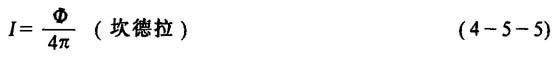 因为球体包含的立体角ω=4π(球面度),所以,如果点光源向四周发射光通量,其平均球面光强为: