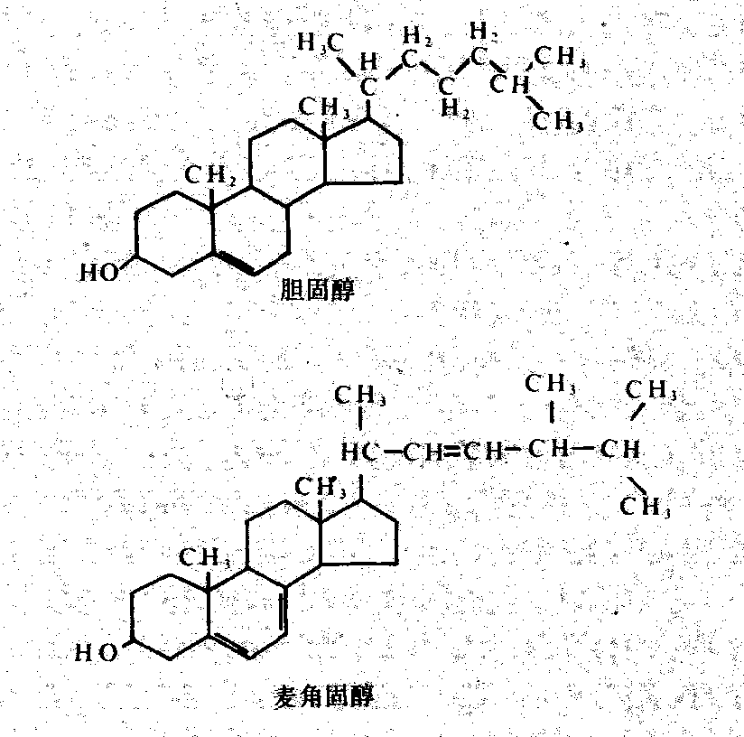 释义 | 脂类lipids一大杂类难溶于水而易溶于亲溶剂的生物物质。包含许多在化学上彼此无关的化合物。通常将脂类分为两大类:一类是可以皂化的脂,称为复杂脂,包括酰基甘油酯类、磷酸甘油酯类、鞘脂类和蜡等; 一类是不可皂化的脂,称为简单脂,包括萜类化合物、甾类化合物和前列腺素类等。 酰基甘油酯可皂化,形成甘油和脂酸的钠盐(肥皂)。在动物、植物体内三酰甘油是作为细胞贮脂的主要组分。在自然界也存在二酰甘油和单酰甘油,但含量极少。其他酰基甘油类如烷基醚酰基甘油及糖基酰基甘油两类,它们有烷基醚二酰甘油、半乳糖基酰基甘油以及鲨肝醇等。其结构如下。 磷酸甘油酯类 另一类含甘油的脂类。磷酸以酯键与甘油结合。最重要的是卵磷脂和脑磷脂,前者碱基为胆胺,后者碱基为乙醇胺,所以卵磷脂又称磷脂酰胆碱(胆碱磷酸甘油酯),脑磷脂又称磷脂酰乙醇胺。它们的化学结构如下: 鞘脂类 主要成分是鞘氨醇或相应的碱。它又分碱性鞘脂、中性鞘脂、酸性鞘脂和糖鞘脂。主要有神经酰胺、半乳糖脑苷脂、唾液酸(N-乙酰神经氨酸)、N-乙酰D-半乳糖胺。它们的结构如下: 蜡 由高级脂酸和高级一元醇所结合的脂。一般是固体,不溶于水,温度稍高时变软。按来源可分为植物蜡和动物蜡。植物蜡如巴西棕榈蜡、糠蜡; 动物蜡有蜂蜡、羊毛内蜡、虫蜡、鲸蜡。此外尚有矿蜡,如石蜡、地蜡。 简单脂 简单脂的特点是都不含脂酸,它们的结构十分复杂。 ![]() 甾类化合物 基本结构为环戊烷多氢菲。在生物体内,它可以游离状态或以与脂酸结合成酯的形式存在。重要的甾类化合物有胆固醇、麦角固醇,重要的衍生物有胆汁酸。它们的化学结构为: 前列腺素类 其基本结构是由廿碳不饱和脂酸衍生出来的前列腺酸。重要的前列腺素有前列腺素A1(PGA1)、前列腺素B1 (PGB1)、前列腺素E1(PGE1)、前列腺素F1α(PGF1α)和前列腺素F2α(PGF2α)。它们的化学结构为: 脂酸均能溶于乙醚、氯仿、苯和酒精中,在水中的溶解度随分子量增加而减小。低碳数的脂酸是无色液体,易溶于水,有刺激气味; 中碳数的脂酸是油状液体,微溶于水,在有乳化剂(如肥皂、胆汁酸盐)的存在下,可与水混合成乳状液;高碳数的脂酸是固体,不溶于水,其熔点则随碳原子数目的增加而上升,有折光性。不饱和脂酸的折光率一般比饱和脂酸的折光率高。脂酸与碱(NaOH,NaHCO3)作用生成盐,脂酸与醇作用可生成酯。在催化剂(Ni等)的影响下,不饱和脂酸的双键上可加氢而成饱和脂酸。卤族元素中的碘、溴同样可加入不饱和脂酸的双键上,从而产生饱和的卤化脂。从加碘数目的多少,可以推测油脂中不饱和的程度。油脂的不饱和度用碘价表示,即100克脂类样品中所能吸收碘的克数。不饱和脂酸与氧作用,可产生脂酸的过氧化物; 过氧化物可进一步分解产生醛及酸,放出臭味,即酸败。 脂类 脂类脂类包括脂肪、磷脂和胆固醇等,它们都难溶于水。下面分别介绍这三种脂类物质。 ☚ 人体内主要化学物质的含量 蛋白质 ☛ 脂类lipids又称脂质。脂肪和类似脂肪物质的统称。以脂肪为主体分为真脂(脂肪)和类脂(类似脂肪的其他脂类化合物)两类;按组成和结构分为单纯脂(脂肪、蜡)、复合脂(磷脂、糖脂)和异戊二烯脂(萜、固醇)3类。单纯脂与复合脂为可皂化的脂,异戊二烯脂为不可皂化的脂。它们在结构和功能上并不同类,但分子中碳氢比例都较高,易溶于非极性或弱极性的有机溶剂而难溶于水,在体内往往互溶或结合在一起,代谢联系较为密切。是生物体的重要组成成分,具有多种生理功能。 脂类一类难溶于水而易溶于非极性溶剂的有机生物分子。主要由C、H、O3种元素组成,某些脂类含有N和P元素。脂类的基本成分是脂肪酸,脂肪酸是14~22个碳原子组成的链。一些脂类的另一组成成分是甘油,甘油是3个碳原子连成的一条直链,每个碳原子与一个OH根相连。脂类通常分为2大类:不可皂化的脂类,即简单脂;可以皂化的脂,即复杂脂。脂肪和油脂都是由3个分子脂肪酸和1个分子甘油结合而成。 脂类 脂类zhilei指用非极性溶剂(如氯仿或乙醚)从生物细胞或组织中提取的、不溶于水的油性有机物,又称脂质。脂类有几种不同的分类方法。主要有酰基甘油类(中性脂肪),磷脂类、鞘脂类、固醇与脂肪酸构成的酯(类固醇)及蜡。其他已知的脂类在动物组织中较少,如萜类由5碳单位异戊二烯 ☚ 糖代谢 类脂 ☛ 脂类lipid指中性脂肪和类脂及其许多衍生物(包括脂蛋白)的总称。其共同性质是不溶于水或微溶于水,仅溶于有机溶媒如乙醚、氯仿及丙酮等。正常人含脂类占体重的14~19%,胖人约占32%,过度肥胖者可达60%。绝大部分是以甘油三酯形式储存于腹腔、皮下及肌纤维间的脂脂组织中,称储脂。因其受营养状况和机体活动的影响而增减,故亦称可变脂。作为组织基本结构的类脂,约占总脂的5%,因其不受营养状况和机体活动的影响,称固定脂或基本脂。 脂类 脂类脂类是动植物组织中一类重要的有机化合物。它不是按相同的成分与结构而划分出来的一类化合物,仅仅是用脂溶剂从动植物组织中提取所得的各种化合物的总称。Bloor(1943)曾提出,脂类应具有三个特征: ☚ 血糖 脂肪酸 ☛ 脂类 脂类脂类是脂肪和类脂及其许多衍生物的总称,是一类不溶于水而易溶于非极性有机溶剂的物质。脂肪在细胞中多以油滴形式存在,其含量直接受营养状况和机