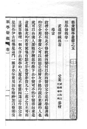 释义 | 脉学发微书名。4卷。恽铁樵撰于1926年。卷一专论脉诊以外的诊法,包括望色、察呼吸、分析病状等;卷二为脉学概论、原理等,并释十字脉象(指大、浮、动、数、滑、沉、涩、弱、弦、微);卷三~四结合病例分析促、结、代、浮、沉、迟、数诸脉。全书用中西汇通的观点阐述脉理,解释脉要。但不免有牵强附会、联系欠当的缺陷。 脉学发微màixuéfāwēi脉学著作。4 卷。恽铁樵撰于1926 年。卷一专论脉诊以外的诊法, 包括望诊、察呼吸、分析病状等; 卷二为脉学概论、原理等, 并释十字脉象( 指大、浮、动、数、滑、沉、涩、弱、弦、微); 卷三至四结合病例分析促、结、代、浮、沉、迟、数诸脉。全书用中西汇通的观点阐述脉理,解释脉要, 但不免有牵强附会、联系欠当的缺陷。 脉学发微 |