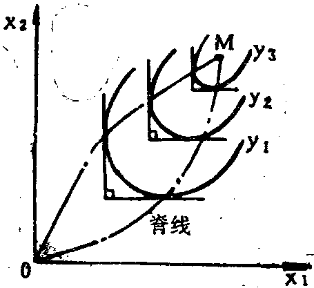 释义 | 脊线ridge line又称资源替代界限。连接一组等产量曲线上资源边际替代率为无穷大的各点或资源边际替代率为零的各点而成的曲线。等斜线的一种。是资源由相互替代关系变成互补关系的分界线。x1、x2为两种生产资源,y1、y2、y3、y4等为一组等产量曲线,MN和MP即为脊线,两线相交点M是总产量最高点。在MNOP这一四边形范围内,生产一定量产品时,一种资源投入量的减少,必须有另一种资源投入量的增加,即资源间的关系是替代性质,而且增加两种资源中任何一种,都有助于提高总产量。超过这两条界限,即在MN线上方和MP线右方,则两种资源不是同增,就是同减,才能维持相同产量水平,因此资源间的关系已变成互补性质,资源配合进入了不合理阶段。由于在这个区域内,资源的边际产量均为负值,增加资源投入量只能导致总产量下降。 脊线图 脊线 脊线系一种特殊等斜线。即当等斜线斜率K为零或为无穷大时得到的等斜线。脊线有两条,两条脊线所夹的等产量线即为资源替代的合理范围。因此脊线对于确定资源最小成本配合有着重要的经济意义,扩展线或规模线必定在脊线范围之间。脊线描绘了资源替代的极限。脊线可能是直线,也可能是曲线,如果生产函数有极值存在,则脊线收敛于最大产量M点。 脊线图示 ☚ 等斜线 等收益线 ☛ 脊线ridge line |