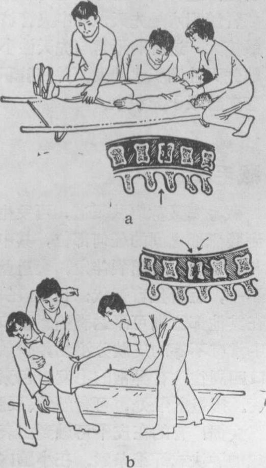 释义 | 脊髓损伤病名。即由直接或间接外力损伤脊髓所导致的损伤性疾病,是脊柱骨折脱位最严重的合并症。 脊髓损伤脊髓受到外力打击而引起的实质性或功能性损害。包括脊髓震荡、脊髓挫裂伤、脊髓压迫等。 脊髓损伤myelic injury系由脊柱骨折、脱位所引起的脊髓传导功能障碍。可分为脊髓震荡、部分挫裂伤、完全挫裂伤及马尾神经损伤等。表现为受伤平面以下的感觉、运动、生理反射、膀胱与肛门括约肌功能等不同程度的丧失。完全丧失者,称完全性截瘫。治疗在于解除压迫,恢复其功能。全瘫者预后不良,不全瘫或马尾损伤者预后较好。 脊髓损伤jǐsuísǔnshānɡ病名。直接或间接外力损伤脊髓所导致的损伤性疾病, 是脊柱骨折脱位最严重的合并症。 脊髓损伤 脊髓损伤脊髓损伤是一种残废率很大的损伤。占全身损伤的0.2~0.5%,在地震灾害中发病率高达10%,在脊柱骨折中伴发脊髓损伤者约占20%。闭合性脊髓损伤多见于工厂、矿山和施工等意外事故,偶见刀剑或匕首等凶器所致的开放性损伤。战时火器性脊髓损伤中,以硬脊膜穿破的开放性损伤较多见。但也有一部分为硬脊膜完整的非开放性损伤。实验研究证明,脊髓的原发性损伤往往并不严重,伤后迅速产生的继发性 “脊髓中央出血性坏死”是造成脊髓功能障碍加重的原因,在手术治疗上。前路减压术对屈曲性脊柱骨折伴发脊髓损伤有较好的效果。 图1胸腰椎骨折时病人的搬运 图2颈椎骨折时病人的搬运 (1) 椎板切除术: 解除脊髓受压,只要病人全身情况允许,伤后1~2日内即可进行。术中亦可行脊髓后正中切开术,对减轻继发性脊髓中央出血性坏死和恢复脊髓功能有帮助。局部降温或用大量冷盐水反复冲洗损伤部,对神经功能恢复有好处。 (2) 前入路减压术: 适用于来自脊髓前方的压迫,如椎体压缩性骨折,椎体后上缘和椎间盘突出压迫,早期手术效果较好。 并发症的防治主要有褥疮、泌尿系感染及肢体挛缩畸形,要勤翻身,清洁及保护皮肤,在容易受压的部位采用软垫及间断按摩、鼓励病人深呼吸及咳痰,在可能的情况下让病人起床或坐轮椅活动。注意导尿和膀膀冲洗的无菌操作,适当地应用抗生素。康复治疗有: ❶在肢体完全瘫痪的过程中应加强被动运动,预防肢体挛缩和关节强直; ❷肢体运动功能部分恢复后,在被动运动和理疗基础上,嘱病人加强自动运动,进行锻炼; ❸晚期神经功能不能恢复,如足下垂可行跟腱延长或三关节固定; 内收肌痉挛可行内收肌切断或闭孔神经切断术; ❹职业训练,积极学习和掌握新的职业技能。 开放性(刀戳性)脊髓损伤 是由于刃器刺入脊柱引起的脊髓损伤,创口处可有肌肉外突或脑脊液流出。约有1/3伴发胸腹脏器损伤。受伤的部位以胸椎最多,颈椎次之,腰椎最少。1/3的脊髓损伤为完全性,2/3为部分性。部分性损伤中,脊髓半侧损害者约占半数。根据脊柱X线平片中骨折和折断刃器的位置而了解脊髓损伤部位。根据有无休克、皮下气肿、气胸、血胸和腹腔内出血,以确定伴发的合并损伤。治疗必须首先手术取出致伤物。在取折断的刃器时,尽量不使其移动,以防止将不全性脊髓损伤变成完全性。并应在直视下取出致伤物。对可能有大血管和胸腹腔脏器损伤者,术前备血应充足,术中临床多科协作共同处理。脊髓全切断时,可借牵拉神经根使脊髓断端对合,完全性脊髓切断恢复困难,不完全性脊髓损伤病人,约有半数可以恢复工作,膀胱功能多可恢复良好。合并胸腹脏器伤者死亡率高。 火器性脊髓损伤 平时多见于低速(200~350m/s)的投射物如手枪子弹所伤,战时多见于高速 (650~1300m/s)的枪弹或弹片所伤。以后者为严重。根据投射物作用于脊髓的方式可分为: ❶盲管伤,脊髓内有异物存留; ❷贯通伤,投射物穿过脊髓; ❸椎旁伤,投射物在脊髓邻近通过,引起脊髓震荡或挫伤。又根据损伤程度分为完全性和部分性损伤两类,一般在脊髓圆锥以上多见完全性损伤; 而马尾部多为部分性损伤。常伴有颈部大血管、气管和食管,以及胸腹腔脏器的损伤。诊断时除根据外伤史和临床表现外,应摄脊柱X线平片,了解子弹和弹片的位置,以及椎管内有无异物和碎骨片及腰椎穿刺以了解有无血性脑脊液及有无蛛网膜下腔梗阻。治疗方面,应用破伤风抗血清和大量抗生素。早期手术清创,摘除椎管内异物和碎骨片。休克时注意处理胸、腹合并伤。 ❶部分性脊髓损伤症状在加重者; ❷椎管内有金属异物或碎骨片存留者; ❸颈静脉压迫试验显示蛛网膜下腔梗阻者; ❹创口有脑脊液流出持续时间较长者,均应作椎板切除探查。脊髓圆锥以上的完全性损伤预后不佳,圆锥和马尾的部分性损伤预后较好。 屈曲性脊髓损伤 是暴力造成屈曲性脊柱骨折时所引起的脊髓损伤,为闭合性脊髓损伤中最常见者。高处坠落时足或臀部着地,或弯腰工作时重物击中肩背部,使脊柱骤然过度前屈,常在脊柱活动范围较大的胸腰椎交界部(胸11~腰2)发生压缩性骨折。其中以胸12或腰1骨折最多见,胸11或腰2骨折次之。一般多为1个椎体发生压缩骨折或骨折脱位,有时可见2个以上椎体压缩者。根据暴力作用的方向,如脱位的分力较挤压的分力大时,容易发生脊柱骨折和脱位,此时后纵韧带多被撕裂,椎体脱位也常伴有关节突的骨折或交锁(跳跃); 如挤压分力大于脱位分力,则产生椎体压缩性骨折,脱位很轻或无明显脱位。一般可见压缩椎体的