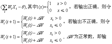 释义 | 脑内的信息处理 脑内的信息处理从控制论的观点来看,脑是一个信息处理的装置,又是体内调节控制的中枢。研究脑内的信息处理,对揭示脑的工作原理和脑及其他系统疾病的机制有重要意义。人脑是极为复杂的系统,估计有1010~1011个神经元,每个神经元平均有上万个突触,每一突触都有信息处理功能(参见“神经信息的传递与加工”条),而神经元间实际联接的细节目前还不太清楚。因此,脑内信息处理功能的研究将是一项长期的任务。 息 (相当于大脑的原 感区);第二层为联合 层;第三层为决策层, 也是模型的输出层。 感受层与联合层间的 联接是随机的,而联 合层到决策层间的联 接则可以通过学习改 变。 图1 感知机示意图 假定学习是在教师指导下进行,教师根据模型输出正确与否,决定如何改变感知机中联合层与决策层的联系。例如,将A及其他字母输入模型,开始时模型不能正确判断;但在教师指导下,修改联合层与决策层的突触导通能力,最后模型可学会正确判断。若用向量X表示联合层的状态(即各神经的兴奋与抑制情况),用Y表示决策层的输出,而它们间的突触联系用向量W表示,则Y=1 ![]() 出正确时使权重和增加,而不正确时则减小。通过这样的学习,在一定条件下,感知机可以学会正确判断。 已经提出了小脑皮质是一种特殊的感知机的设想。小脑皮质的结构极规整,人类小脑共有五种不同神经元。在小脑感知机模型中,假设苔状纤维相当于感受层,颗粒层相当于联合层,而浦氏细胞相当于决策层。小脑的学习是通过大脑为教师而实现的,大脑通过攀登纤维将示教命令传到小脑,使之改变相应的突触联接。利用小脑皮质的感知机模型可以解释小脑对运动控制的主要特征。而在此模型基础上,曾设计出仿小脑的探纵器控制系统,并用电子计算机进行模拟。在这样的模拟系统中,如改变系统的参数时,其所控制的运动可产生类似小脑共济失调的结果,由此可能为小脑病变机制的阐明提供有价值的线索。 联想存储器模型 人的记忆具有联想的特点,即把信息存贮在相互联系之中。可以用神经元组成这种联想记忆功能的模型。联想存贮器神经网络模型的研究是目前生物控制论研究中比较活跃的领域,已提出多种不同方案,进行计算机模拟和理论分析。一个简单的联想存贮器如图2所示,它是由两组神经元组成的网络,由M个神经元组成X组,N个神经元组成Y组,各组神经元兴奋的组合分别代表一个事件(或模式),X与Y组中任何两个神经元间均有突触联系存在,而其突触的导通能力均是可塑的。假设每个神经元只有兴奋与抑制两种状态,分别用1和0来表示,则每一事件可以用0或1为元素的向量来表示,两相关事件可以用X=(x1,x2……xn),Y=y1,y2……yn) 来表示。如果神经元xi与另一组神经元yj之间的突触联系用mij来表示,则所有的突触组成一个M×N矩阵, 即M ![]() 贮器M中的信息为 ![]() 中XtL表示X的转 置。在这种情况 下,可以从输入XI 取出对应的YI,即 在X组输入信息 XI,可以在Y组取 出 ![]() 图2 联想存储器示意图 XI。已经证明,如XL相互正交,则有ÿI=YI,即可以正确取出对应的存贮内容,其正确取出存贮事件的数目为X的维数,即M个。 联想存贮器的特点是,信息处理为并行方式,每一事件是分布地存贮到许多存贮单元中,因此,由部分信息就可以取出相应的完全的信息,个别元件的缺损对于取出的结果影响很小。除了已有电子计算机模拟外,还做过相当于25个神经元,325个突触的硬件电子装置。脑是有多级递阶结构的系统,模拟的多级联想存贮器模型的初步研究结果,已显示具有更接近人脑的记忆功能。由于脑模型一般是时变的非线性网络,通常应用电子计算机模拟方法,验证模型的功能和引出所需的结论。在一些简化条件下,也可作一些理论分析,如存贮容量的估计,学习过程的收敛性分析等。 其他脑模型 神经系统的模型研究,还可以为神经系统疾病的病因、诊断和治疗提供线索,如在建立了皮质下海马结构的神经网络模型后,研究其中参数对网络稳定性的影响,为癫痫发生的机理提供了线索。海马结构神经网络在某一些情况下,可以产生高频峰发放,这意味着癫痫的发生。 ☚ 感觉的信息处理 房室系统的建模与辨识 ☛ |