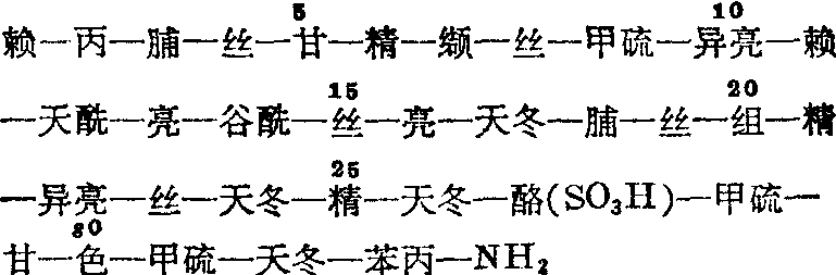 释义 | 脑功能与生物活性物质 脑功能与生物活性物质神经系统由无数的神经细胞组成。这些神经细胞都是独立的,互相之间没有原浆的联系。每个神经细胞不只是结构单位,也是营养单位和生理功能单位。神经细胞表现出来的一切兴奋、传导和整合等功能特性都是神经细胞的功能。 β-内啡肽的作用和脑啡肽相似,其镇痛及麻醉效应比脑啡肽更强,而且持续的时间也长。脑室注射脑啡肽,其作用可持续15~20分钟,而β-内啡肽却可持续2小时以上。脑室或脑内注射β-内啡肽,对神经系统除有镇痛效应外,还影响下丘脑的分泌、体温调节、饮食行为,引起失眠、抑制呼吸、抑制胃肠活动等。动物延髓池注射β-内啡肽,可引起强直、木僵、抽搐等动作。β-内啡肽亦可抑制腺苷酸环化酶的活性。此外,脑啡肽和内啡肽对许多激素的分泌都有调节作用,如垂体前叶激素、催乳素、生长素、促黄体生长激素等,功能极为复杂。 7. 强啡肽:为32肽,其结构为: 用对豚鼠回肠肌收缩的抑制作用强弱为指标测得其活性比亮-脑啡肽高700倍。强啡肽的活性可完全被钠咯酮拮抗,而亮-脑啡肽只能被拮抗1/3。脑啡肽、内啡肽和强啡肽都和针刺镇痛、针刺麻醉有密切关系。针刺过程可引起类吗啡肽含量增加。 垂体肽类 1. 催产素:为八肽,以半胱氨酸计算则为九肽,其结构为: 2. 后叶加压素: 又称抗利尿激素或加压素。为九肽,其结构为: 3. 促黑(素细胞)激素(MSH):已发现有α、β、γ、δ四种促黑激素。α-MSH为13肽,其结构以骆驼为例为: β-MSH在动物如猴、牛、猪、骆驼等都为18肽,只个别氨基酸有差异,如猴的结构为: 牛的结构在N-端第二个氨基酸以丝氨酸取代谷氨酸,第六个氨基酸以赖氨酸取代精氨酸,其余结构皆同。而人的β-MSH为22肽,除C-端18个氨基酸与猴的β-MSH完全相同外,在N-端又增加了四个氨基酸,为丙—谷—赖—赖。 γ-MSH为12肽,其结构为: MSH为脑下垂体中叶激素 α-MSH存在于与体温调节有关的部位,包括下丘脑前部和膈区。在机体发热时,膈区的α-MSH含量升高,而弓状核的α-MSH含量却下降,表明α-MSH由弓状核中的胞体通过轴浆运输到神经纤维。α-MSH的退热作用比扑热息痛强2500倍 (重量比)。β-MSH有刺激黑色素扩散及生物合成的作用。M-SH的释放受促黑素激素释放激素和促黑素激素释放抑制激素的控制。 4. 促黄体生成激素(LH):为含糖蛋白质,其蛋白质分子由不同亚基组成。不同种属动物的氨基酸组成有较大差别。羊LH的α-亚基由96个氨基酸组成,而猪的α-亚基由90个氨基酸组成,但其中有某些肽段之氨基酸顺序基本相同。猪的β-亚基由119个氨基酸组成,而人的β-亚基由115个氨基酸组成。其中第1~17氨基酸肽段中,有三个氨基酸不同,第23~28氨基酸肽段完全相同,第31~39氨基酸肽段中只相差一个氨基酸,第47~54氨基酸肽段中,有两个氨基酸不同。猪的第68~101氨基酸肽段和人的第67~100氨基酸肽段除有5个氨基酸不同外,其余氨基酸完全相同。促黄体生成激素属脑下垂体前叶激素,有刺激性腺,使睾丸的间质细胞及卵巢分泌激素,促成黄体生成的作用。 5. 促卵泡激素(FSH):为含糖蛋白质,其蛋白质部分由不同亚基组成,不同种属动物其亚基的氨基酸数目及组成均有差异。 人的促卵泡激素α-亚基由92个氨基酸组成,β-亚基由118个氨基酸组成。猪的β-亚基由107个氨基酸组成。人和猪的β-亚基中第8、9氨基酸相同,人的第34~44、49~51、63~107氨基酸肽段依次与猪的35~45、50~52、64~108氨基酸肽段几乎完全相同。 促卵泡激素属垂体前叶激素,其作用是促进产生精子及卵子,并促进卵巢发育。 6. 催乳激素: 为具有199(猪、牛)或198(羊)个氨基酸的多肽,猪和牛的199肽中有31个氨基酸不同,其余皆同。羊的198肽中,除比猪和牛的少一个亮氨酸外,其余氨基酸序列皆同。 催乳激素为脑下垂体前叶激素,有刺激乳腺分泌的作用。它的分泌受催乳激素释放激素(PRH)的支配。 7. 促肾上腺皮质激素(ACTH):为39肽。牛和羊的A-CTH一级结构完全相同,人的和牛、羊的只有第33位的CTH一级结构完全相同,人的和牛、 羊的只有第33位的一个氨基酸不同(人为谷,牛羊为谷酰),其余部分完全相同。牛、羊ACTH的一级结构为: 8. 促甲状腺激素 (TSH):为含糖蛋白质。其蛋白质分子含有α及β亚基。猪的TSH β-亚基有112个氨基酸,而牛的有113个。其中除少数氨基酸有差异外,绝大部分氨基酸相同。 促甲状腺激素作用于甲状腺,有促进甲状腺发育及分泌的作用,还可促进cAMP的形成,从而激活脂肪组织三酰甘油脂酶的活性。 9. 生长激素(GH):人和牛的生长激素由191个氨基酸组成,N-端为丙氨酸,C-端为苯丙氨酸。生长激素的作用较广,有促进生长,促进代谢,促进蛋白质合成和脂肪分解的作用。 下丘脑肽类 1. 促黑激素释放激素(MSHRH):又称促黑激素释放因子,有促进促黑激素释放的作用。 2. 促黑激素释放抑制激素(MRIS):有两种形式。M-RIH-Ⅰ为三肽,其结构为:脯—亮—甘—NH2。MRIH-Ⅱ为五肽。MRIH-Ⅱ的活性是MRIH-Ⅰ的千分之一。有对抗氧化震颤素(一种中枢内乙酰胆碱M型受体激动剂)引起的震颤作用。能减轻震颤麻痹症。这些作用与促黑激素本身无关。 3. 促黄体生成激素释放激素(LHRH): 为10肽,其一级结构为: 焦谷—组—色—丝—酪—甘—亮—精—脯—甘—NH2。无种属特异性。有调节性行为、促进黄体生成激素的分泌和对抗促甲状腺激素释放激素的作用。 4. 生长素释放抑制激素(GHRIH):又称生