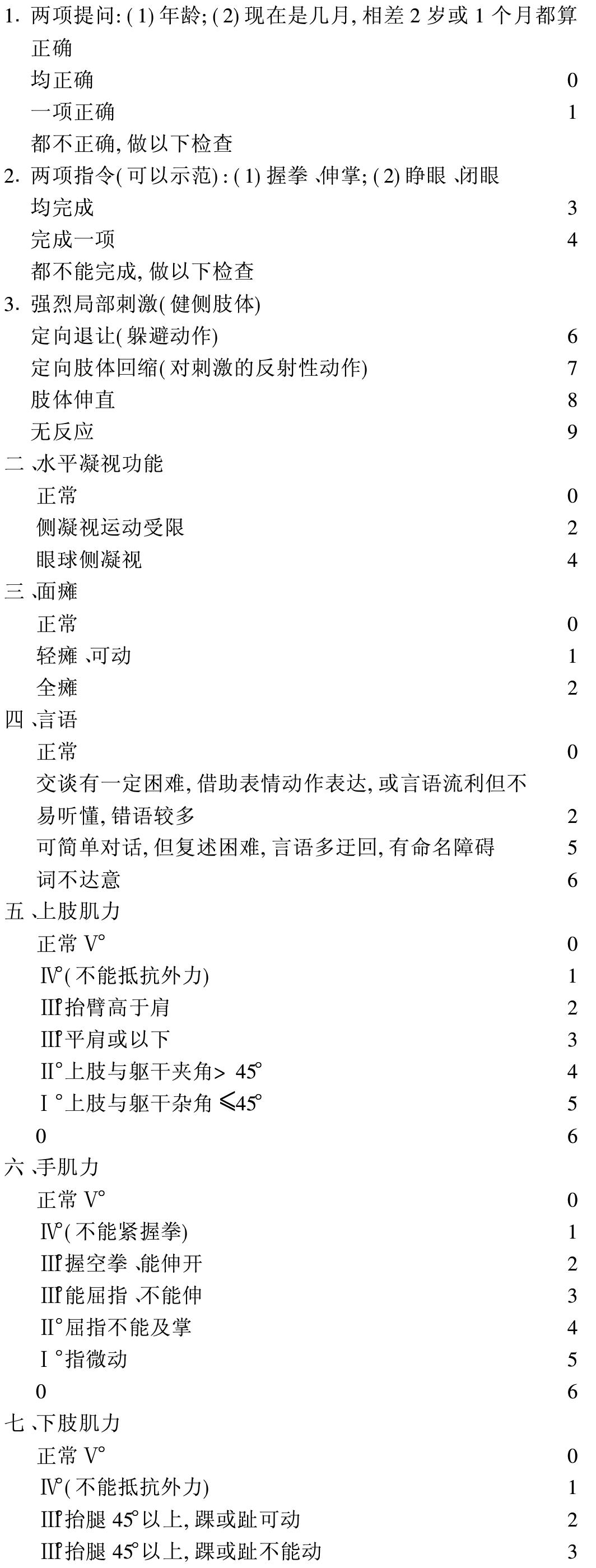 字词 | 脑卒中患者临床神经功能缺损程度评分标准 |