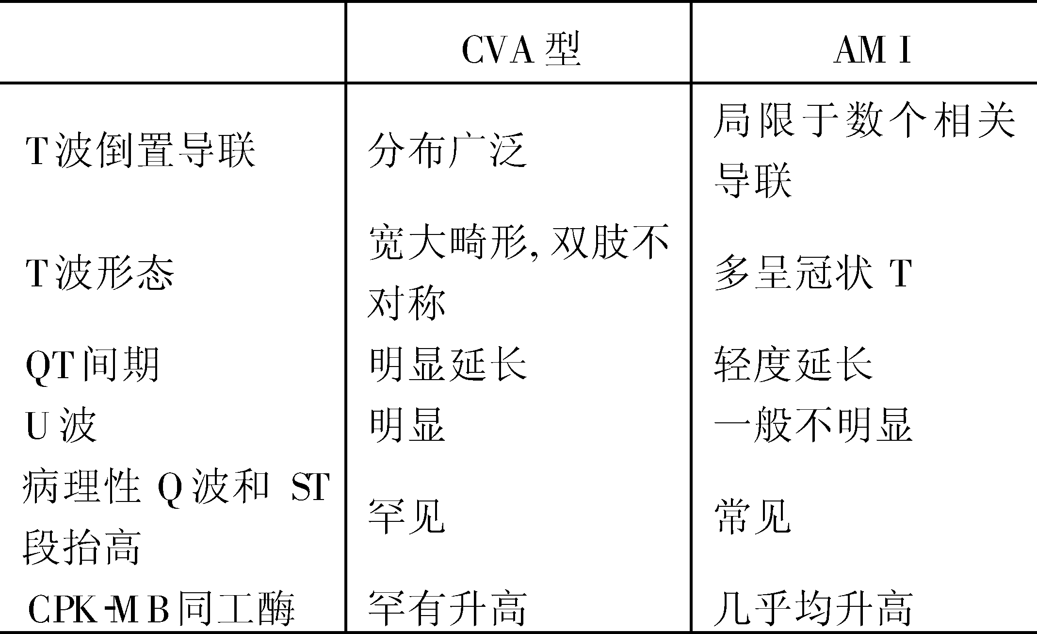 释义 | 脑血管意外型心电图改变 脑血管意外型心电图改变cerebrovascular accidence electrardiogram chage某些脑血管意外如蛛网膜下腔出血患者心电图可出现一些特征性改变,如T波深倒置,明显U波和QT间期明显延长,被称为脑血管意外型(CVA型)心电图改变。病因及发病机制 CVA型心电图改变不仅见于脑血管意外,还可见于头颅外伤、颅内感染和颅内占位性病变、阿-斯氏综合征等。其发生机制一般认为是由于脑损害引起自主神经中枢兴奋,导致交感神经和迷走神经张力增高,引起心肌功能性改变或器质性损害,从而改变心肌的复极过程。CVA型心电图改变特点 典型的CVA型心电图具有以下特点:(1)T波倒置:T波倒置一般较深,有时深度可达15mm,倒置的T波宽阔,底部较钝,T波畸形,双肢不对称。有时T波升肢向外明显“膨出”,可能系倒置的U波与T波升肢融合所形成。T波倒置可见于多数导联,在V3~V6导联最为明显,V1、aVR导联则可能出现对应性T波直立。发病数小时后即可出现T波深倒置,在其后数日内可继续加深,以后再逐渐变浅,约需数周方可完全恢复正常。(2)U波明显和QT间期延长:典型的CVA心电图U波明显,可以直立,也可以倒置,与T波融合,使其形态不规则。QT(U)间期往往明显延长,可超过正常60%以上。鉴别诊断 CVA型心电图应与急性心肌梗死(AMI)相鉴别(见下表)。 CVA型与AMI心电图的鉴别 ☚ SSS综合征 两点半综合征 ☛ |