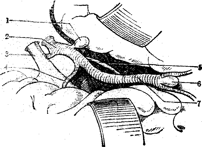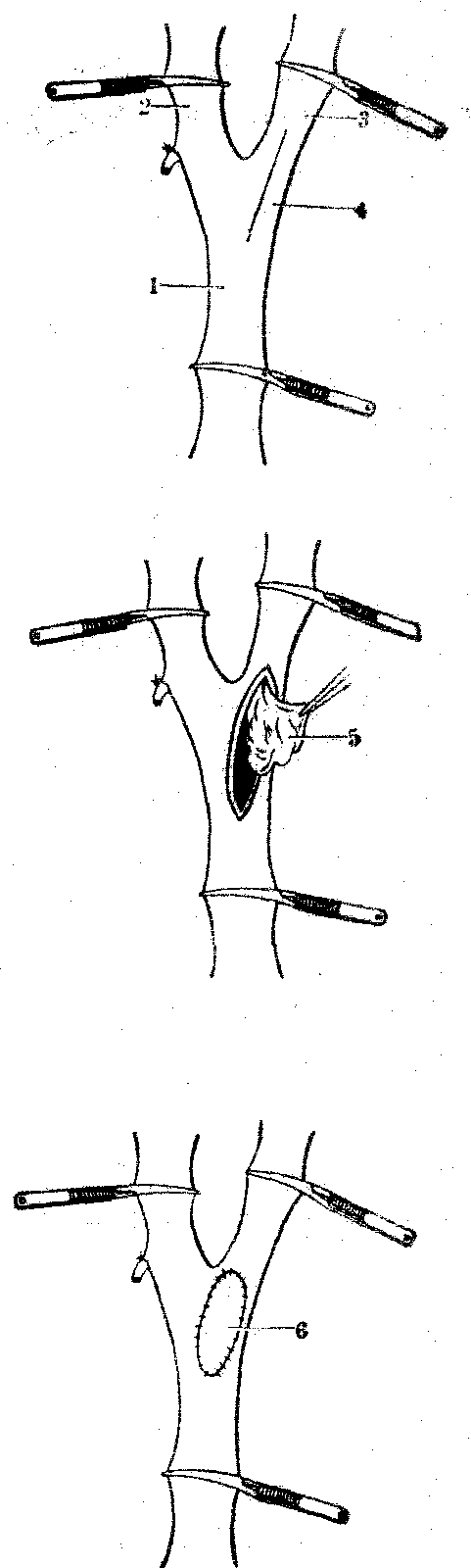 释义 | 脑血管病的手术 脑血管病的手术颅内动脉瘤的间接手术——颈动脉结扎术 适用于颈内动脉颅内段动脉瘤,特别是海绵窦段及床突下段动脉瘤。结扎颈部动脉可降低颈内动脉压,减轻血流对动脉瘤壁的冲击力量,防止动脉瘤破裂出血; 并使动脉瘤内血流减少,促使血栓形成。对于颈内动脉远端即分出后交通动脉分支以后的动脉脉瘤,由于脑底动脉环的侧支循环,结扎颈部动脉常不能达到上述目的,手术后仍有较多出血的机会,故已很少应用。病人有明显意识障碍,有脑内血肿或脑血管痉挛,有严重动脉硬化,对侧颈动脉狭窄,及压迫颈动脉试验不能耐受者,均不宜行颈动脉结扎术。结扎可选择颈总动脉或颈内动脉。结扎颈内动脉效果较好,但产生偏瘫、失语等脑缺血合并症者较多。结扎颈总动脉较安全,应用者较多。 图1 颈总动脉慢性结扎 颅内动脉瘤的直接手术 直接手术为开颅直接处理动脉瘤,适用于能够暴露的颅内各部位的动脉瘤。影响手术效果很重要的一方面为手术时机的选择。动脉瘤出血后常可于短期内再次出血,病情常较上次出血为重。故如病人情况良好者,宜在出血后2~3天内进行手术,以免再次出血错过手术时机。病情严重者过早手术,操作困难,危险较大,需经内科治疗待病情稳定好转,脑水肿消退后,一般约需两周左右,再行手术。脑血管造影中有明显脑血管痉挛者,手术危险亦大,宜待2~3周后血管痉挛消失再手术较安全。按病人的病情轻重分级,Ⅰ、Ⅱ级病人情况较好,能耐受手术,危险较小,手术效果较好,宜争取在2~3日内作脑血管造影后进行手术。Ⅲ、Ⅳ级者病情较重,早期手术危险较大,宜在几天内先作脑血管造影,待病情稳定好转后再进行手术。但如有较大的血肿,致颅内压明显增高,出现脑疝迹象者,应及时手术,清除血肿,一般先不处理动脉瘤。除非手术中动脉瘤已暴露,处理上无困难者。至于Ⅴ级手术危险很大,应行内科治疗(见“颅内动脉瘤”条),待病情明显恢复后再考虑手术。在病人等待手术时应给予适当内科治疗。手术前晚给予镇静剂。准备大量血液,一般需2000ml以上。准备不同长度及不同角度的动脉瘤夹,国内多用Scoville夹或Yasargil夹,亦可用Heifetz夹或Kerr夹等。准备细剥离子、小钩、探针、小尖刀、小剪刀等以及聚合粘胶。最好用显微手术器械、手术显微镜及双极电凝。手术用气管内插管全身麻醉。颈内动脉动脉瘤手术可先在颈部暴露颈总动脉,以备必要时暂时阻断血流。在暴露动脉瘤后进行剥离前可用 Arfonad或硝普钠作控制性低血压,使收缩压降至60mm汞柱,以减少破裂危险。病情较重或需暂时阻断血流时间较长者,可予低温麻醉,使体温降至30~32℃,可提高脑对缺氧的耐受力,减少手术危险性。术中可用甘露醇及激素,以降低颅内压便于显露。必要时术后继续应用以防治脑水肿。手术方法有以下几种: (1) 动脉瘤颈结扎或夹闭术: 是最合理的治疗方法,既能闭塞动脉瘤,并保证脑血流通畅。在瘤颈部用细丝线予以结扎或用弹性动脉瘤夹予以夹闭。用丝线结扎适用于动脉瘤颈细者,需在瘤颈周围作较多的剥离,瘤颈游离清楚后,用动脉瘤针将丝线绕过瘤颈予以结扎。须轻柔细致,操作较困难。如结扎过松则动脉瘤仍有供血,结扎过紧则有可能将管壁撕破。在动脉瘤夹不断得到改进后,目前已很少用丝线结扎。先暴露动脉瘤近端及远端的动脉,再暴露动脉瘤颈,必要时在剥离瘤颈前于其近端用动脉瘤夹暂时阻断血流,一般勿超过20分钟。勿剥离动脉瘤顶部以免破裂出血。瘤颈部蛛网膜用小尖刀或小剪子分开,勿牵扯。粘连轻轻分离后,用细剥离子或探针于瘤颈两侧探查,使有足够的间隙放置动脉瘤夹。与脑血管造影核对确定部位正确,并检查其下方无主要血管通过后,轻轻放置动脉瘤夹。如动脉瘤颈较宽,动脉瘤夹尽可能与动脉千平行,以免动脉扭屈影响血循环。夹闭后检查认为满意后,将近端动脉上的暂时阻断小夹撤去。 (2) 动脉瘤孤立术: 于动脉瘤近端及远端将载瘤动脉夹闭,使动脉瘤孤立于血循环之外,由于此法阻断了载瘤动脉的正常血循环。故仅适用于侧支循环良好的某些部位,如颈内动脉近端、大脑前动脉近端等,对位于动脉末梢部的亦适用。在这些部位的动脉瘤如瘤颈过宽或粘连过多难于剥离者,可作孤立术,将动脉瘤近端及远端的动脉用银夹或动脉瘤夹予以夹闭。 (3) 动脉瘤壁加固术: 如动脉瘤颈宽大无法夹闭且不宜行孤立术者,可行动脉瘤壁加固术,以减少破裂出血的机会。但需将动脉瘤完全游离,在近期有过出血的病人,有再破裂的危险,故不适用。加固的材料可用肌肉锤打后包裹于动脉瘤周围,使形成粘连。但难以作到包裹紧密,仍不能完全防止再出血。也可用止血海绵包裹动脉瘤。或用甲基丙烯甲酯(Methyl methacrylate)、聚乙烯聚偏二氯乙烯(Polyvinyl-polyvinylidene chlori-de)、环氧树脂(Epoxy resin)、硅酮(Silicone)、EDH粘胶等聚合胶涂抹包绕于动脉瘤壁上,可迅速凝固以达到加固的目的,但需注意应用的粘胶应无明显不良反应。 (4) 动脉瘤内栓塞术: 用人发或兽毛剪成6mm长,灭菌后,根据动脉瘤不同大小,取3~15根用特制汽枪射入动脉瘤内,使引起血栓形成,将动脉瘤闭塞。亦可用适量粘度低的聚合胶注入动脉瘤腔内,将瘤腔闭塞。各部位动脉瘤的手术操作: (1) 颈内动脉动脉瘤: 直接手术适用于后交通动脉起始处至分叉处的动脉瘤。病人取仰卧位,