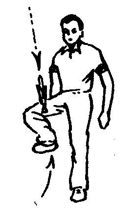 释义 | 脚内侧踢毽球 脚内侧踢毽球踢毽球基本技术动作之一(图2—3—80)。以右脚踢毽球为例:踢毽球前,两脚先自然稍分开站立,两腿微屈,身体重心移至左脚上,一手将毽球由体前向上抛起。当毽球下落至胸前时,右脚迅速踮地,大腿上提屈膝外张,同时小腿迅速上摆,用脚内侧迎击毽球。