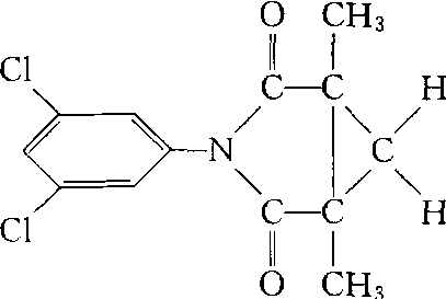 释义 | 腐霉利procymidone又称菌核酮、速克灵。二甲酰亚胺类杀菌剂。化学名称:N(3,5-二氯苯基)-1,2-二甲基环丙烷-1,2,二羰基亚胺。化学结构式如下。原药白色结晶,微溶于水,可溶于丙酮、二甲苯,在日光和潮湿条件下稳定。内吸性杀菌剂。对葡萄孢霉菌和核盘菌有特效,特别是对多菌灵类产生抗药性菌的地区,可以换用此药。用于防治蔬菜、果树、花卉灰霉病、菌核病等。内吸活性较弱,残效期5星期左右。药剂作用于菌体细胞膜,阻碍菌体内高分子生物合成,对植物安全,对人畜低毒,小鼠(♀)急性口服LD50为9 100 mg/kg,经皮LD50>10 000 mg/kg,慢性毒性,致突变,致畸及三个世代繁殖试验均未发现不良影响。 |