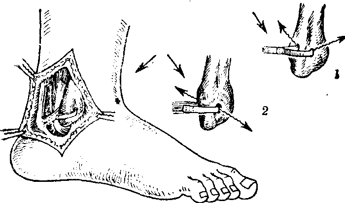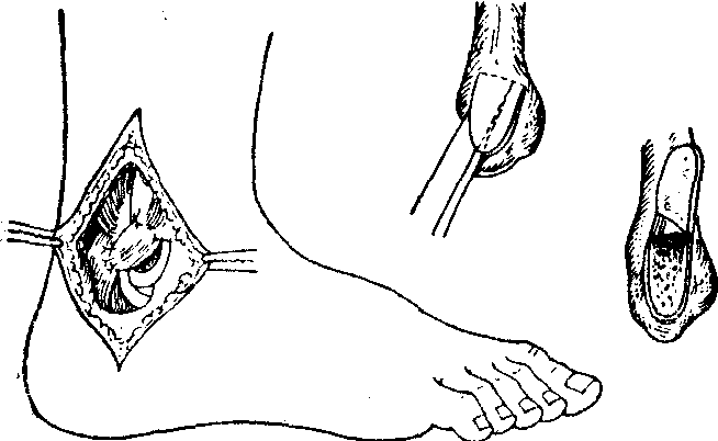 新伤应以石膏固定4~5周。慢性者应手术治疗。术式较多,Watson Jones法较好(见图1)。如用Ellis Jones法应予改良,腱应由腓骨沟穿入固定,而且不应拉得太紧,否则踝背伸受限,影响运动技术(见图2)。 ☚ 距骨剥脱性骨软骨炎 腓骨肌腱弹响 ☛ |