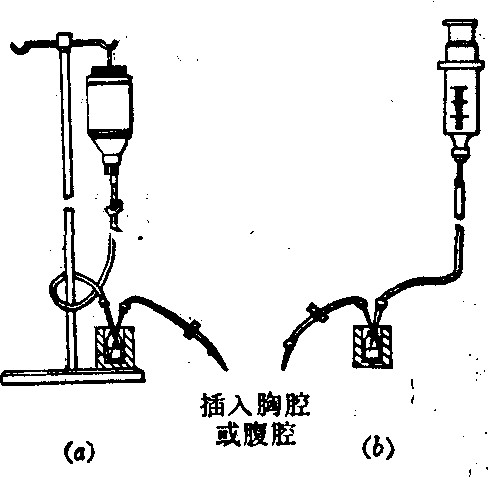 胸腔内放置操作方法基本上与胸腔穿刺抽液相同。放射性胶体32P的剂量为5~6mCi,生理盐水稀释后用针筒注入。放射性胶体198Au的剂量为30~50mCi,胶体198Au的远距离推进装置(a)盐水滴入压出铅罐内小瓶中的198Au (b)盐水推注压出铅罐内小瓶中的198Au用远距离推进装置(见图)压入。一般4~6周后可重复注射。 腹腔内放置有三种情况:术后立即、术后二周内或手术超过二周后放置。最好术中腹腔放置保留塑料导管,或腹腔穿刺后注入少量气体或盐水确证在腹腔内,然后注入放射性胶体。如为腹水病人,则与抽腹水一样,抽液后注入放射性胶体。腹腔内放置成人剂量32P为10~12mCi,198Au为100~150mCi,用生理盐水或10%的右旋糖酐稀释。在放置后24小时内必需变动体位,使放射性胶体均匀分布。 本疗法疗效出现缓慢。预防性治疗时,早期卵巢癌的五年生存率可提高82%。米粒样转移灶可全部消失。即使是晚期病人,存活率亦有明显提高。对胸腹水仅为姑息治疗。 腔内放射性胶体治疗很少出现全身反应,偶有乏力、头晕或恶心等胃肠道反应。并发症有白细胞减少,误入肠道和粘连包裹腔时可引起放射性肠炎或局限性放射性炎症。 ☚ 放射性核素敷贴疗法 放射性核素组织间插植治疗 ☛ |