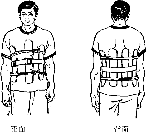 释义 | 腰柱❶经穴别名。出《外台秘要》。《太平圣惠方》作腰注,即腰俞。见该条。 图129 腰柱❶古时固定腰椎损伤的一种工具。多用杉木制成。木板条四块,宽一寸,厚五分,长短以需要而定。刮光,去棱,两端钻孔。用绳连贯成为一排,围于腰椎两侧。绳子缠于腹部,起固定腰椎的作用。 腰柱yāozhù❶医疗器械。出《医宗金鉴·正骨心法要旨》。用杉木四根, 制如扁担形,宽一寸, 厚五分, 长短以患处为度, 各从侧面钻孔, 穿绳联贯即成。先以醋调定痛散,敷腰柱上, 然后将腰柱排列于脊椎两旁, 务须端正, 再用艾叶做薄褥, 覆盖于柱上, 用宽长布带绕向腹前, 紧紧扎裹, 可配合内服药。与现代的腰支架功用相同。适用于腰骶椎及骶髂关节损伤错位, 以及腰肌劳损。 腰柱 腰柱腰柱是用来固定腰椎骨折或脱位的一种正骨器具。《医宗金鉴·正骨心法要旨》云:“腰节骨被伤错筍 ,膂膂肉破裂,筋斜伛偻者,用醋调定痛散,敷于腰柱上,视患处将柱排列于脊骨两旁,务令端正。” 图1 腰柱 图2 腰柱用法 近代应用的夹板腰围是根据腰柱固定的原理加以改进制成(图3),应用于非稳定型脊柱骨折和脱位的固定。 图3 夹板腰围 ☚ 通木 竹帘 ☛ 腰柱yāo zhùlumbar splint |