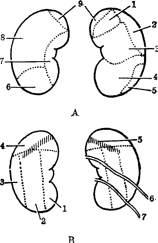 释义 | 腹膜后间隙retroperitoneal space腹膜壁层与腹后壁腹内筋膜和骨盆壁之间的间隙,叫腹膜后间隙。此间隙上达膈肌、下与骨盆结缔组织相连,两侧向外连接腹膜外蜂窝组织。其内含有腹膜后器官、疏松结缔组织和筋膜等。此间隙由于有大量疏松结缔组织,极易发生化脓性感染,并易向上、下扩散。 腹膜后间隙retroperitoneal space位于腹后壁的壁腹膜和腹内筋膜之间。上起自膈下,下至骶岬,并与盆腔的腹膜后隙相通;两侧与腹膜外脂肪相连。上方经膈的腰肋三角和胸肋三角,分别与前、后纵隔相通。间隙内有腹主动脉及其分支、下腔静脉及其属支、乳糜池与淋巴干、淋巴结、交感干、肾上腺、肾及其被膜、输尿管和腹膜外脂肪等。 腹膜后间隙 腹膜后间隙腹膜后间隙为腹后壁壁腹膜与腹后壁之间的间隙。其周界为上至第12胸椎和第12肋,下抵骶骨基部和髂嵴;其外侧界相当腰方肌外缘。间隙内含有大量疏松结缔组织,下续髂窝和盆腔的腹膜外结缔组织。倘有感染,其扩散途径较为广泛。腹膜后间隙内的主要器官是肾、肾上腺、胰、输尿管、腹主动脉、下腔静脉、腹腔神经丛、交感干及精索内血管等。 肾的毗邻 肾的毗邻:肾后下2/3邻膈肌、腰方肌、腰大肌、腹横肌,以及肋下神经和血管、髂腹下神经和髂腹股沟神经。肾后上1/3相当于第11、12肋间部位,借膈与胸膜相隔,有时膈肌有一小三角形裂隙(恰在外侧腰肋弓之上方),此时肾与胸膜仅隔以结缔组织。但胸膜有时低达第12肋以下,所以肾手术时,紧靠12肋下缘切口,慎勿伤及胸膜,导致气胸。左右肾的前面毗邻各不相同:左肾内侧上1/3邻胃,中1/3邻胰,下1/3邻空肠,其外侧上半邻脾,下半邻结肠脾曲;右肾内侧邻十二指肠降部,手术时由于粘连可能造成十二指肠瘘。右肾前面外侧上2/3邻肝右叶,下1/3邻结肠肝曲。两肾上内侧端为肾上腺覆盖。(见图) 肾的被膜由外向内依次为肾筋膜(又称Gerota筋膜)、肾脂肪囊和肾纤维膜。肾筋膜前、后层外面的脂肪称为肾旁脂肪,内面的称为肾脂肪囊,为肾旁封闭麻醉的部位。肾纤维膜贴肾表面,容易剥脱,当肾破裂或肾部分切除时,可缝合纤维膜。 右肾上腺为三角形,覆被肾上极内侧,其前方邻肝裸区,后方为膈肌,前内侧为下腔静脉所遮被。左肾上腺呈半月形,遮被肾上极前内侧,后外为肾与膈肌,前方为网膜囊与胃贲门部,前下方与胰尾和脾动脉、静脉相邻。肾上腺与肾之间为薄层疏松结缔组织,故肾下垂时,肾上腺不受影响。 输尿管上续肾盂,下通膀胱,分为腹段,盆段和壁内段。腹段行于腰大肌表面,在髂总动脉分叉处入盆腔。 输尿管在腹前壁的体表投影: 在第一腰椎平面,距正中线5cm处,画线至左、右髂前上棘连线的中、外1/3交处,为输尿管腹段的投影;再经此点画线至耻骨结节,为盆段的投影。 ☚ 腹膜间隙 颈部分区 ☛ |