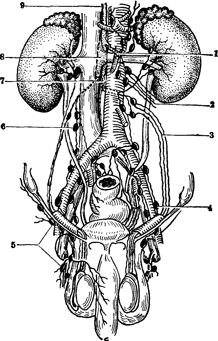 释义 | 腹部淋巴结群 腹部淋巴结群腹部淋巴结可分为壁组及脏组。壁组中主要有腰淋巴结。脏组数量较多,沿腹腔动脉及肠系膜上、下动脉的干和分支配布(见图)。 腹盆腔淋巴结群(男性) ❶胃左淋巴结,沿胃左动脉配布,收纳胃小弯、食管淋巴管。其中环绕贲门的淋巴结,形成贲门淋巴环。 ❷脾淋巴结,位于脾门、胃脾韧带二层之间;胰淋巴结,位于胰的上缘及后面;胃网膜左淋巴结,在大网膜两层之间,胃大弯左侧半。以上诸淋巴结都沿脾动脉及其分支分布。 ❸沿肝总动脉及其分支配布的淋巴结有:肝淋巴结,位于肝十二指肠韧带内,沿肝门血管及胆总管排列;胃网膜右淋巴结,在大网膜两层之间,接近胃大弯右侧半;胃右淋巴结,又名幽门上淋巴结,位于幽门上缘,在肝胃韧带二层之间;幽门下淋巴结,位于幽门下方胰头处,沿胃十二指肠动脉排列;胰十二指肠淋巴结,位于胰头和十二指肠之间。 以上各群淋巴结收纳其同名血管分布区或邻近器官的淋巴。其输出管直接或间接地汇入腹腔淋巴结。 肠系膜上淋巴结 肠系膜上淋巴结位于肠系膜上动脉的根部附近,并借下列各中间群(组)的淋巴结,收纳全部系膜小肠,直至结肠左曲以前的大肠的淋巴管。其输出管参与组成肠淋巴干。此组淋巴结包括: ❶肠系膜淋巴结,位于肠系膜的两层腹膜之间,沿小肠动脉排列,收集空肠和大部分回肠的淋巴管。根据配布的位置可分三列,总数约为300个,一列沿肠壁排列,在小肠系膜缘,一列在肠系膜中份,位于肠血管襻之间,一列位于肠系膜根部。 ❷回结肠淋巴结,位于回肠盲肠交界处的后方壁上,沿回结肠血管排列,其中又可区分出盲肠前、后淋巴结及阑尾淋巴结,收纳相应部位的淋巴管。 ❸结肠系膜淋巴结,分为四组,即: 结肠上淋巴结、结肠旁淋巴结、中间结肠淋巴结和终末结肠淋巴结。 肠系膜下淋巴结 位于肠系膜下动脉根部附近,并借沿左结肠动脉及其他分支排列的淋巴结收纳结肠左曲直至直肠上部的淋巴管,其输出管参与组成肠淋巴干。 ☚ 胸部淋巴结群 盆部淋巴结群 ☛ |