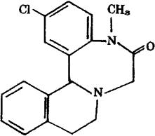 C18H17ClN2O=312.80 CAS-7492-29-7 2-氯-5,9,10-14b-四氢-5-甲基异喹啉并[2,1-d][1,4]苯并二氮杂 -6(7H)-酮。 Isoquino[2,1-d][1,4]benzodiazepin-6(7H)-one,2-chloro-5,9,10,14b-tetrahydro-5-methyl. 2-氯-5,9,10,14b-四氢-5-甲基异喹啉并[2,1-b][1,4]-苯并二氮杂 -6(7H)-酮。 2-Chloro-5,9,10,14b-tetrahydro-5-methylisoquino[2,1-d][1,4]-benzodiazepin-6(7H)-one. 安定药。 克拉索仑。 Clazolam. INN,USAN.  |