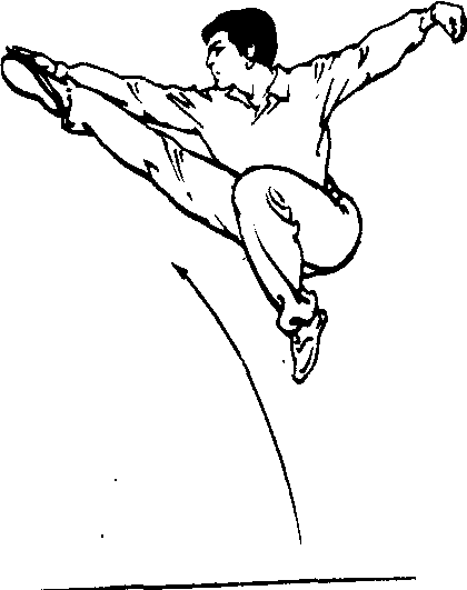 释义 | 腾空飞脚 腾空飞脚直体跳跃动作。亦为腾空腿法。古称“二换腿”、“二踢腿”。近称“二起脚”、“飞脚”。原为实用武技,旨在于踢。明戚继光《拳经捷要篇》三十二势载:“悬脚虚饵彼轻进,二换腿决不饶轻。”清陈鑫《陈氏太极拳图说》释曰:“何谓二起?左右两脚相继一齐离地四五尺而跃起也……然必左足先用力狠上踢,而后右脚始踢高,脚面要平。”近现代发展为花法,意在于“起”。其式分原地、上步、助跑三种。 腾空飞脚 ☚ 鸳鸯跳 腾空双飞脚 ☛ 腾空飞脚 腾空飞脚武术跳跃动作之一。长拳套路中较为常见。为右脚上步,左腿向前上方摆起,同时右手背与左手掌在头上击响。右腿蹬地后腾空向前上方弹踢,同时右手掌与右脚面击响,左臂后展成勾手。动作要领:身体腾空要高,两腿动作要连贯协调,击拍响亮,落地要轻。教学重点:两腿在空中的协调摆动是关键。可采用: 腾空飞脚 ☚ 拗弓步冲拳 上架直拳 ☛ 腾空飞脚 腾空飞脚Tengkong feijiao又称二起脚。为右脚起跳后两手击拍与右手、右脚相击拍依次完成的腾空动作。