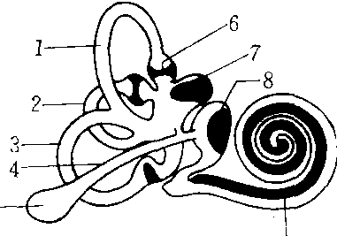 左耳迷路 1.上半规管 2.外半规管 3.后半规管 4.内淋巴管 5.内淋巴囊 6.壶腹嵴 7.椭圆囊斑 8.球囊斑 9. 螺旋器 膜迷路membranous labyrinth系内耳的组成部分。套在骨迷路内,但不充满骨迷路。膜迷路亦分前庭、半规管和蜗管3部分。对位听觉有重要意义。某些病毒、细菌可引起该部炎症,肿瘤亦可使其丧失功能。 |
