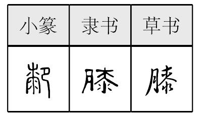 xī厀,形声,从卩,桼(qī)声,卩指骨节,膝盖,大腿和小腿相连关节的前部,讹作“ ”。又作“膝”,意符改为月(肉)。《异体字表》以“ ”为异体字。 |